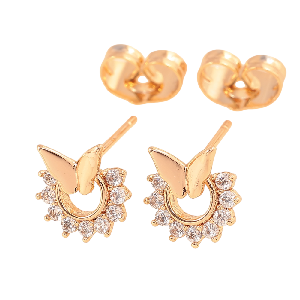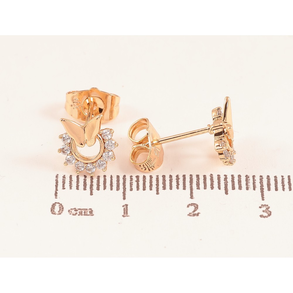 Серьги Xuping цвет Позолота 18К пусеты "Бабочки с кристальными колечками"