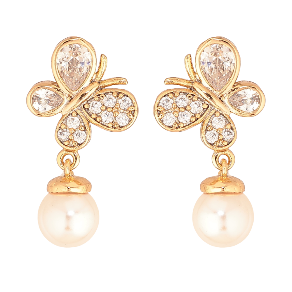 Серьги Xuping цвет Позолота 18К пусеты "Бабочки с жемчужными подвесками"