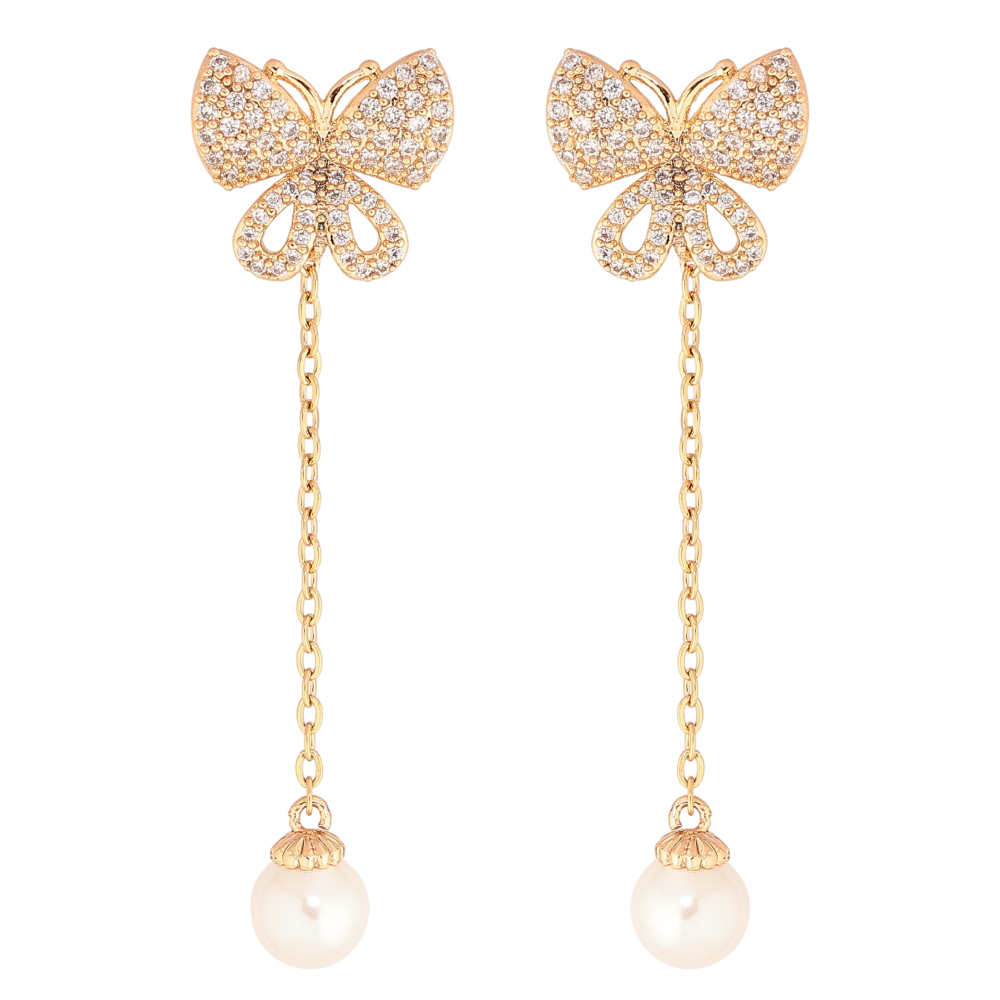 Серьги Xuping цвет Позолота 18К пусеты "Бабочки с жемчужными подвесками" фото №1