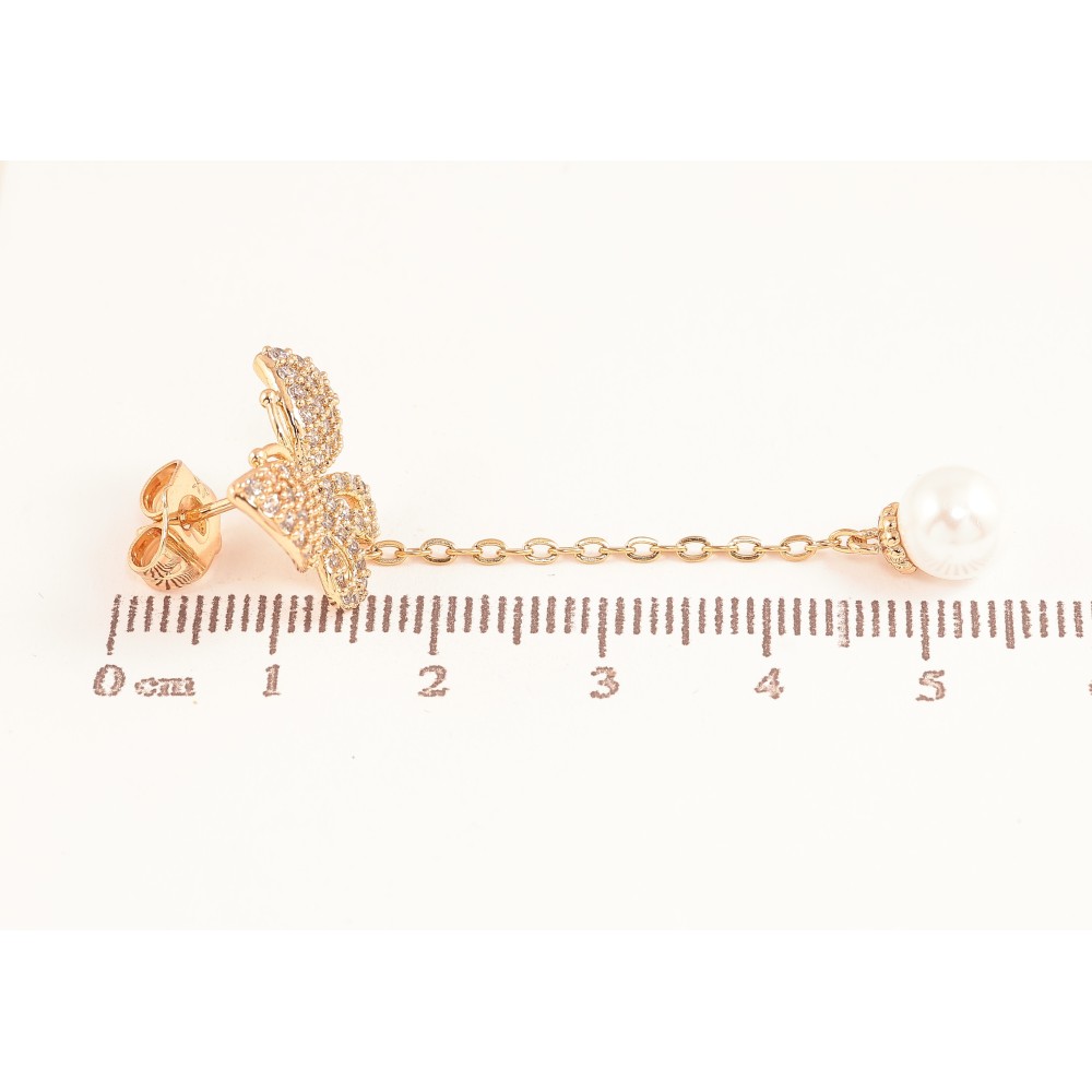 Серьги Xuping цвет Позолота 18К пусеты "Бабочки с жемчужными подвесками" фото №2