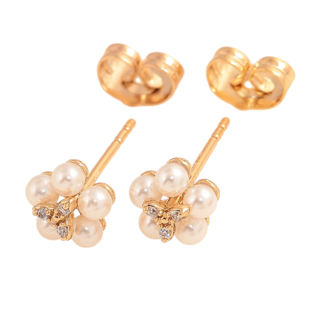 Серьги Xuping цвет Позолота 18К пусеты "Жемчужиные цветочки"