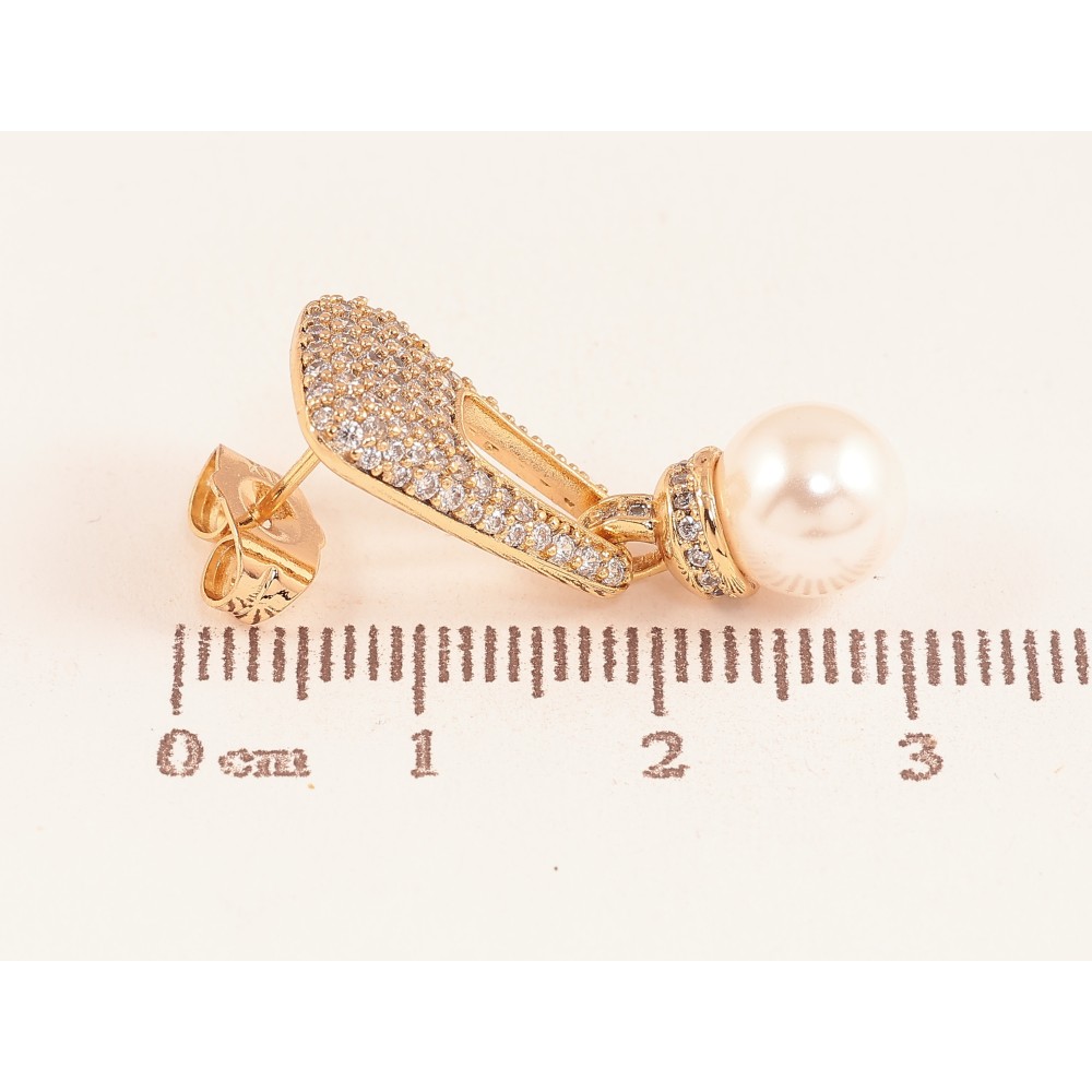 Серьги Xuping цвет Позолота 18К пусеты "Жемчужные подвески с инкрустацией кристаллами"