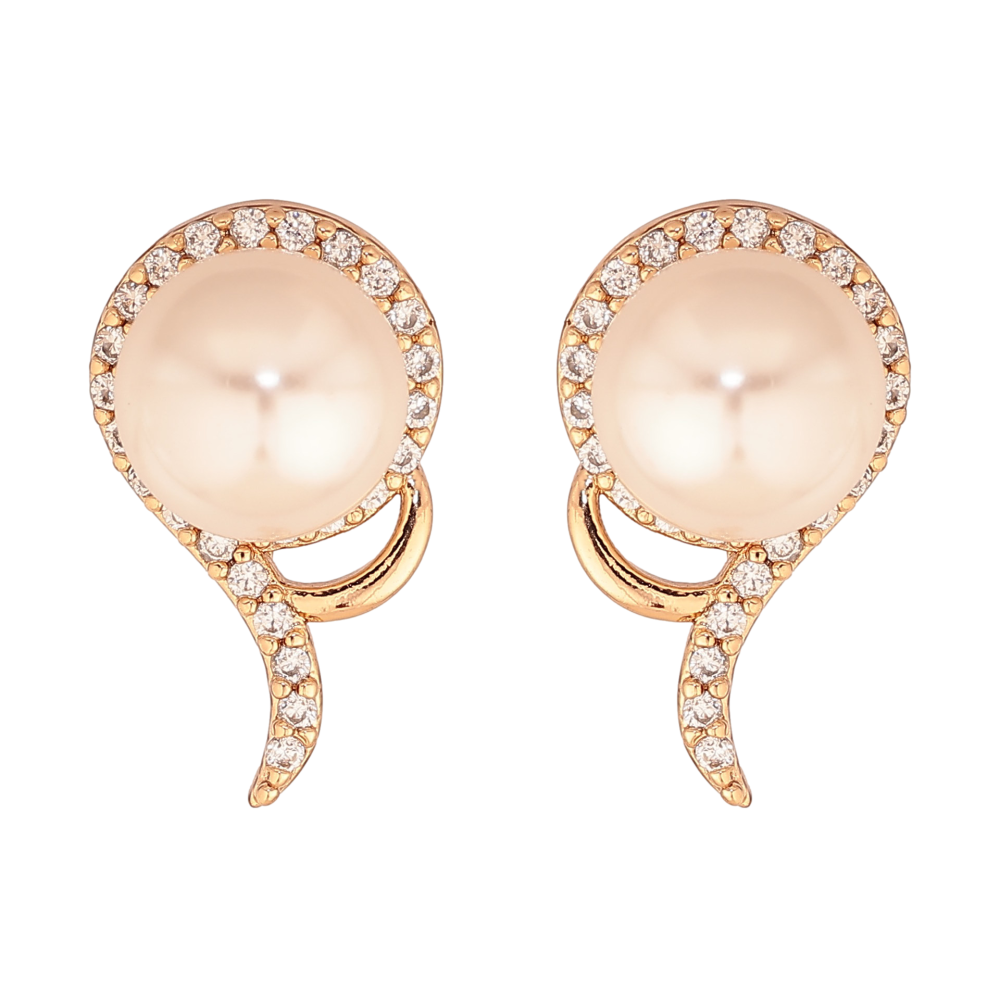 Серьги Xuping цвет Позолота 18К пусеты "Жемчужины в обрамлении кристаллов"