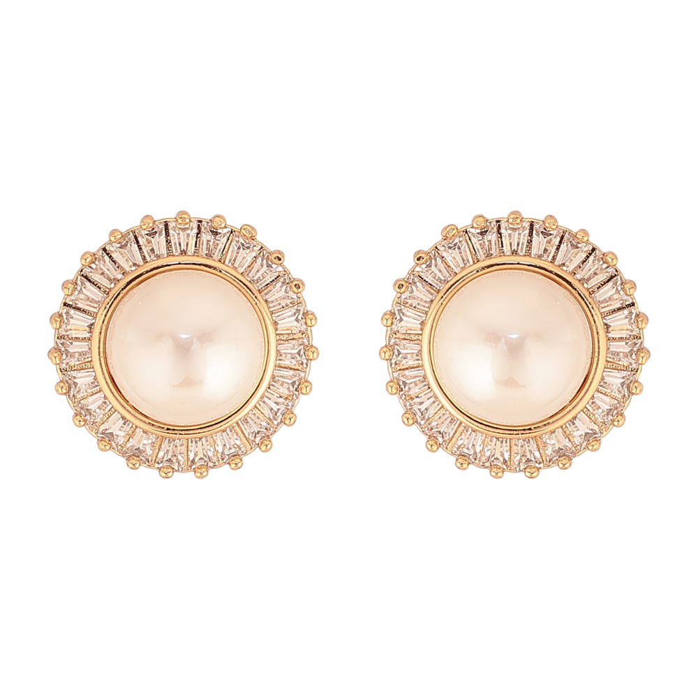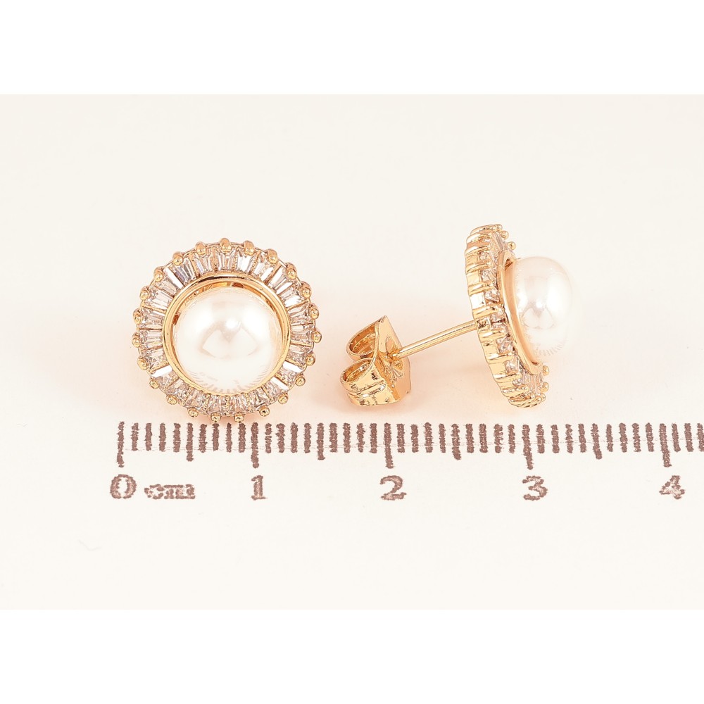 Серьги Xuping цвет Позолота 18К пусеты "Жемчужины в обрамлении кристаллов"