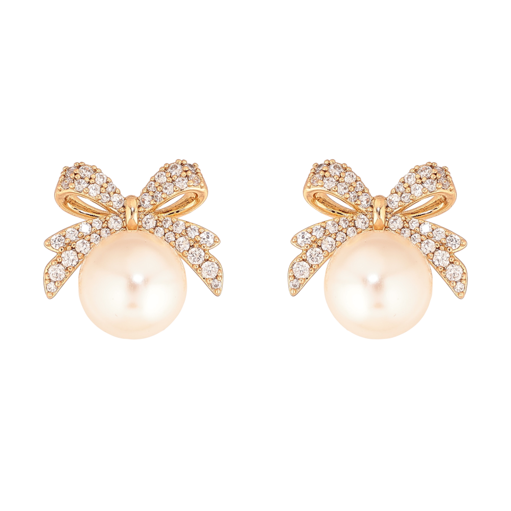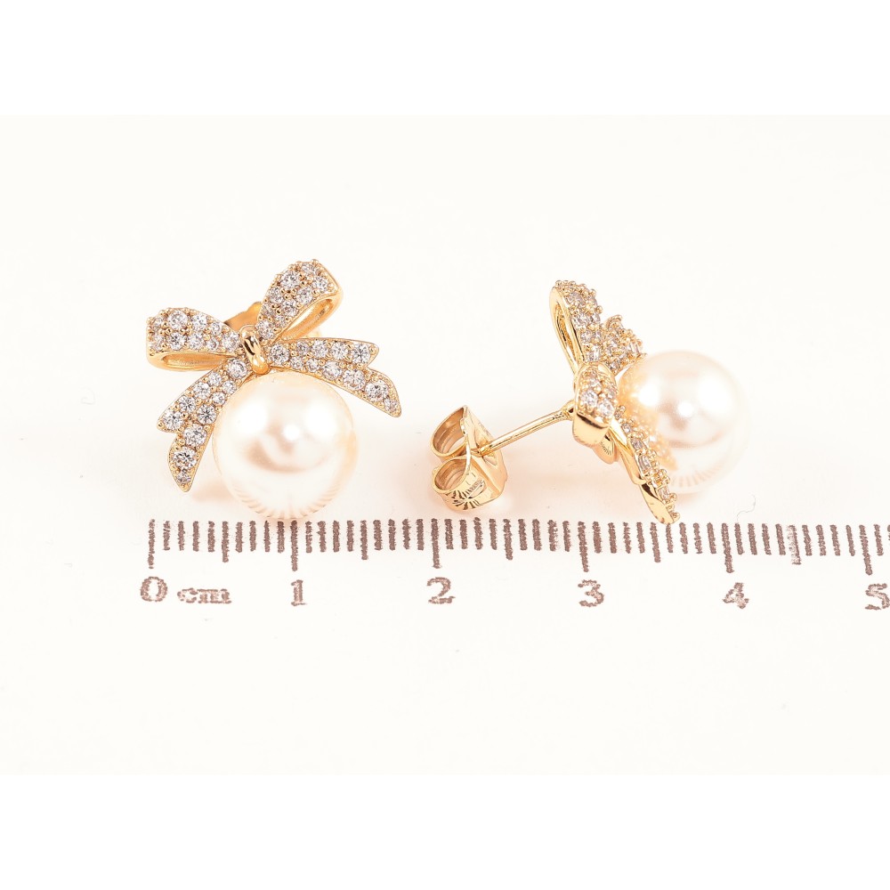 Серьги Xuping цвет Позолота 18К пусеты "Жемчужины с бантами" фото №1