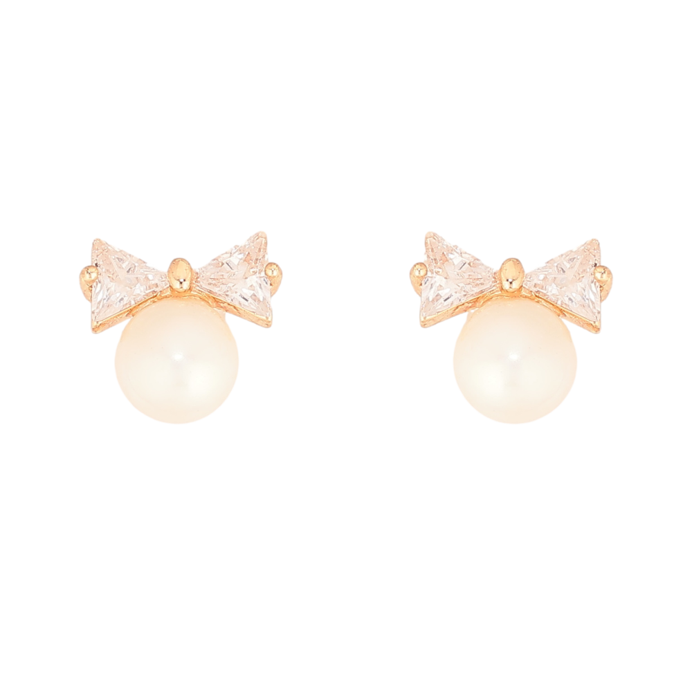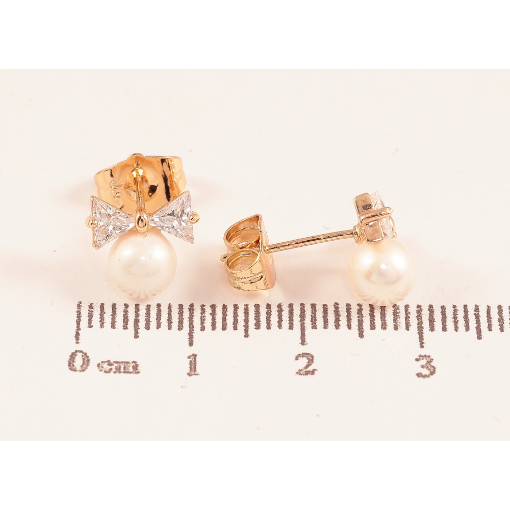 Серьги Xuping цвет Позолота 18К пусеты "Жемчужины с кристальными бантами"