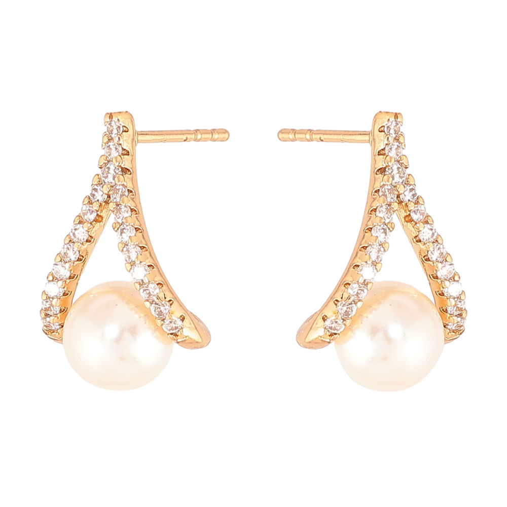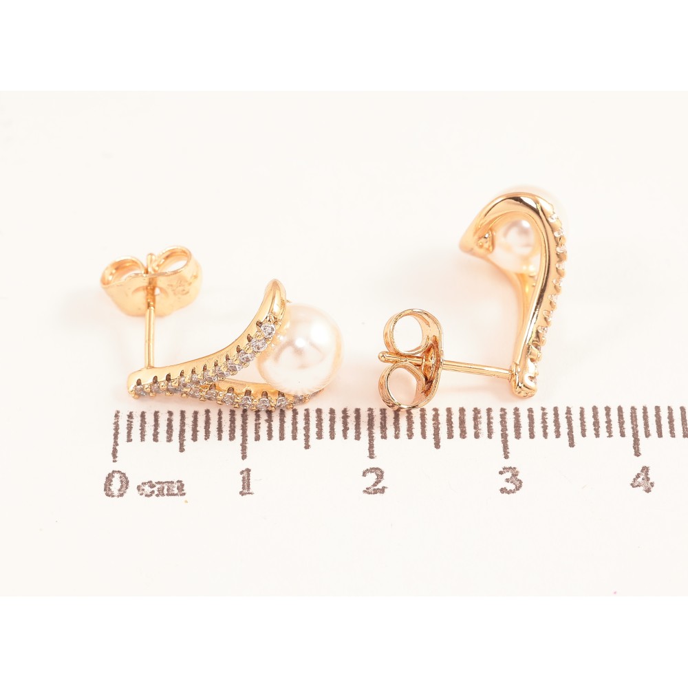 Серьги Xuping цвет Позолота 18К пусеты "Петельки с жемчужинами и кристаллами"