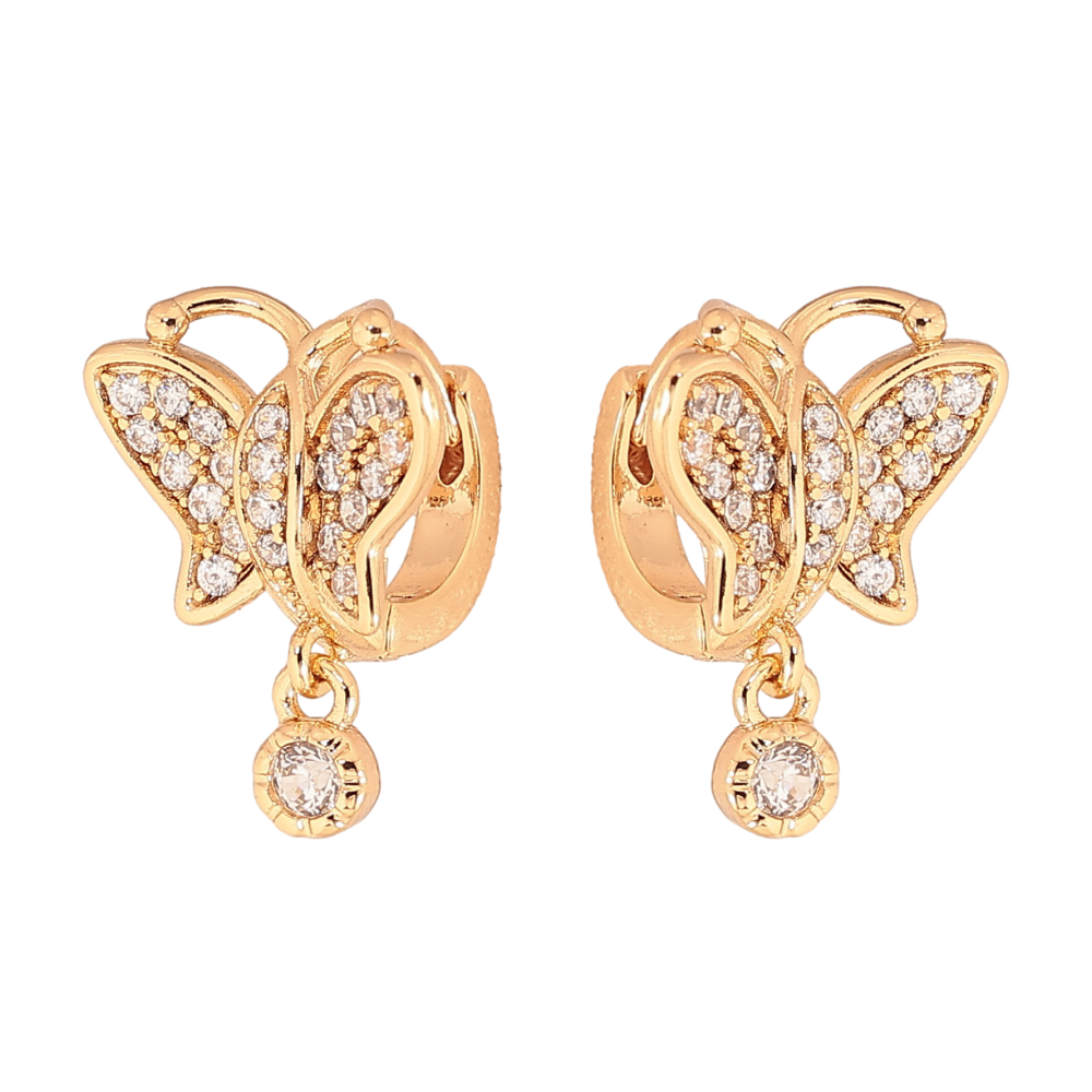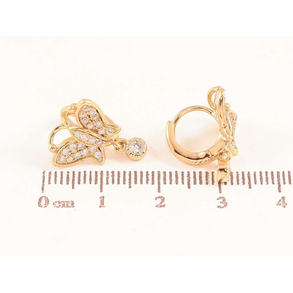 Серьги Xuping цвет Позолота 18К подвески на колечках "Бабочки с кристаллами"