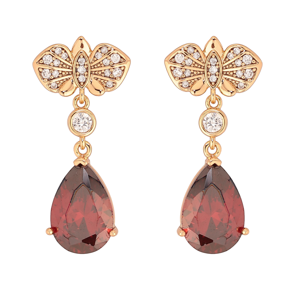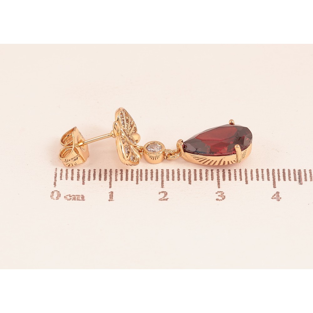 Серьги Xuping цвет Позолота 18К пусеты "Подвески с красными кристаллами"