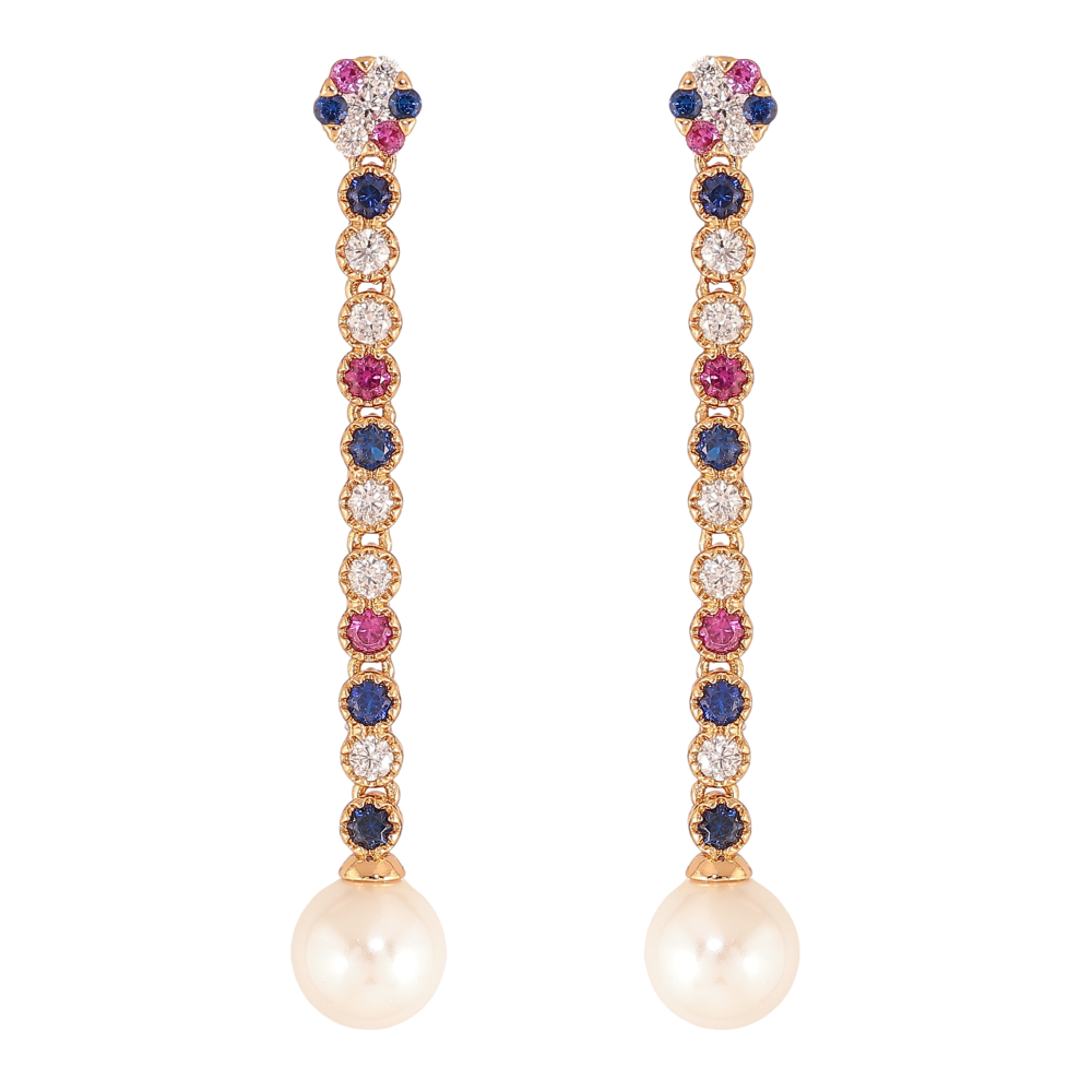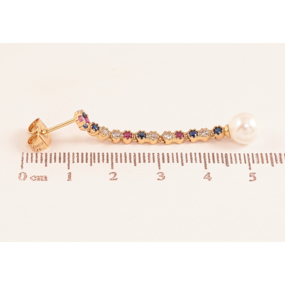 Серьги Xuping цвет Позолота 18К пусеты "Подвески с разноцветными кристаллами и жемчужинами"