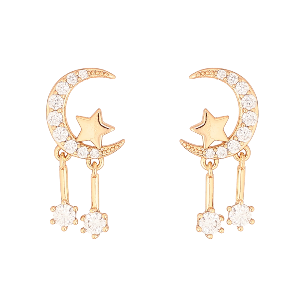 Серьги Xuping цвет Позолота 18К пусеты "Полумесяц со звездой и кристальными подвесками"