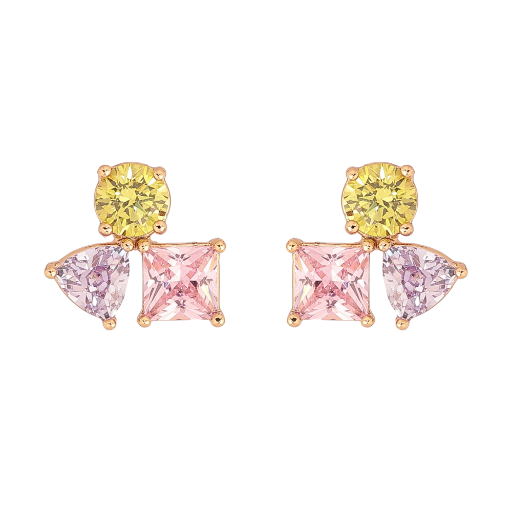 Серьги Xuping цвет Позолота 18К пусеты "Разноцветные кристаллы" фото №1