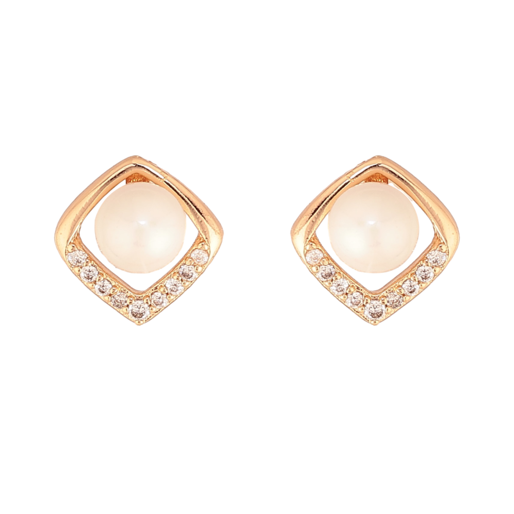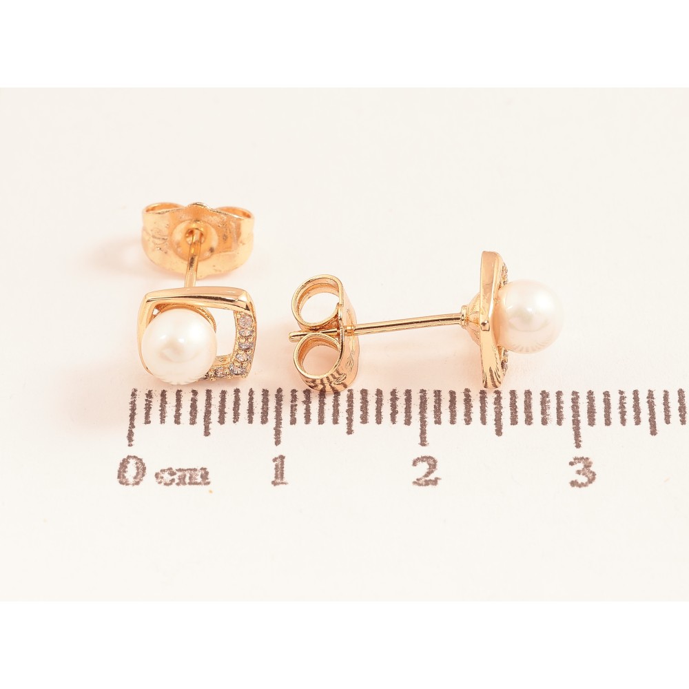 Серьги Xuping цвет Позолота 18К пусеты "Ромбы с жемчужинами и кристаллами"