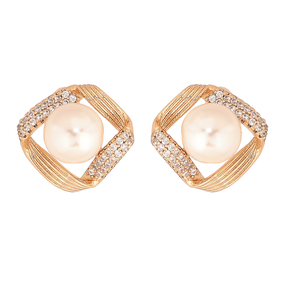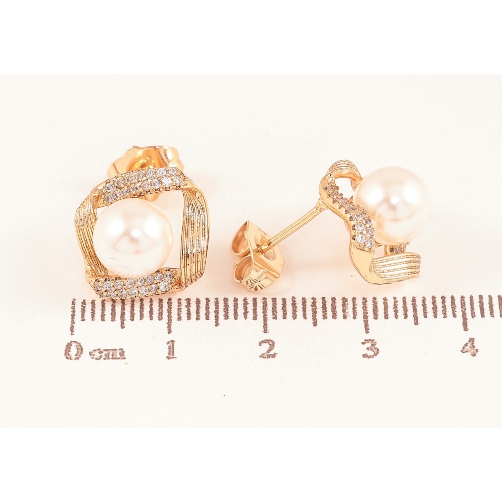 Серьги Xuping цвет Позолота 18К пусеты "Ромбы с жемчужинами и кристаллами"