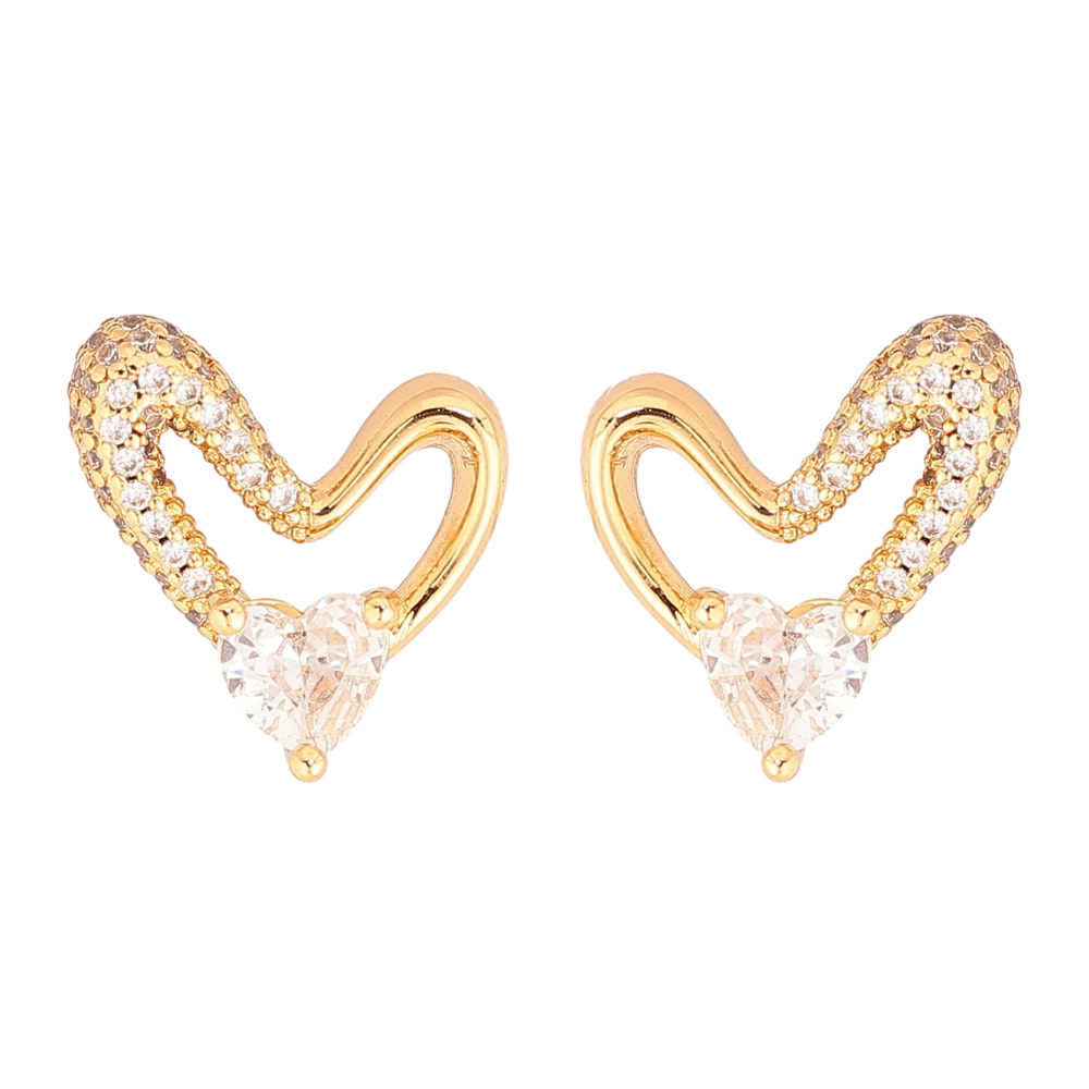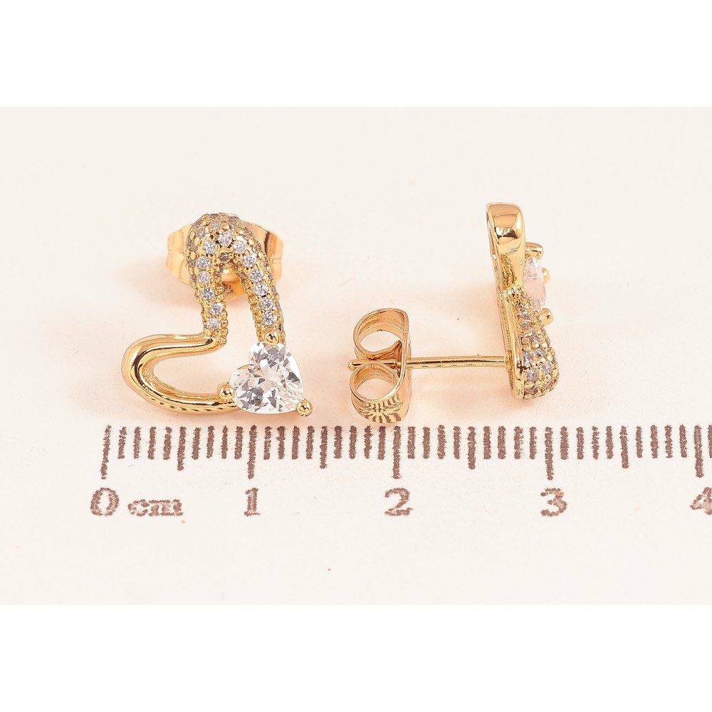 HIT Серьги Xuping цвет Позолота 18К пусеты "Сердечки с кристаллами" фото №1