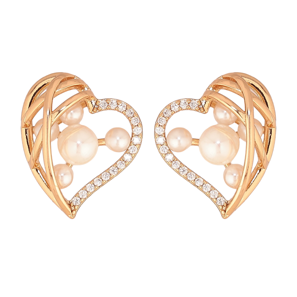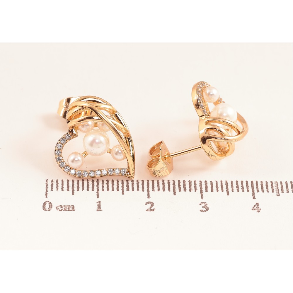 Серьги Xuping цвет Позолота 18К пусеты "Сердечки с кристаллами и жемчужинами"