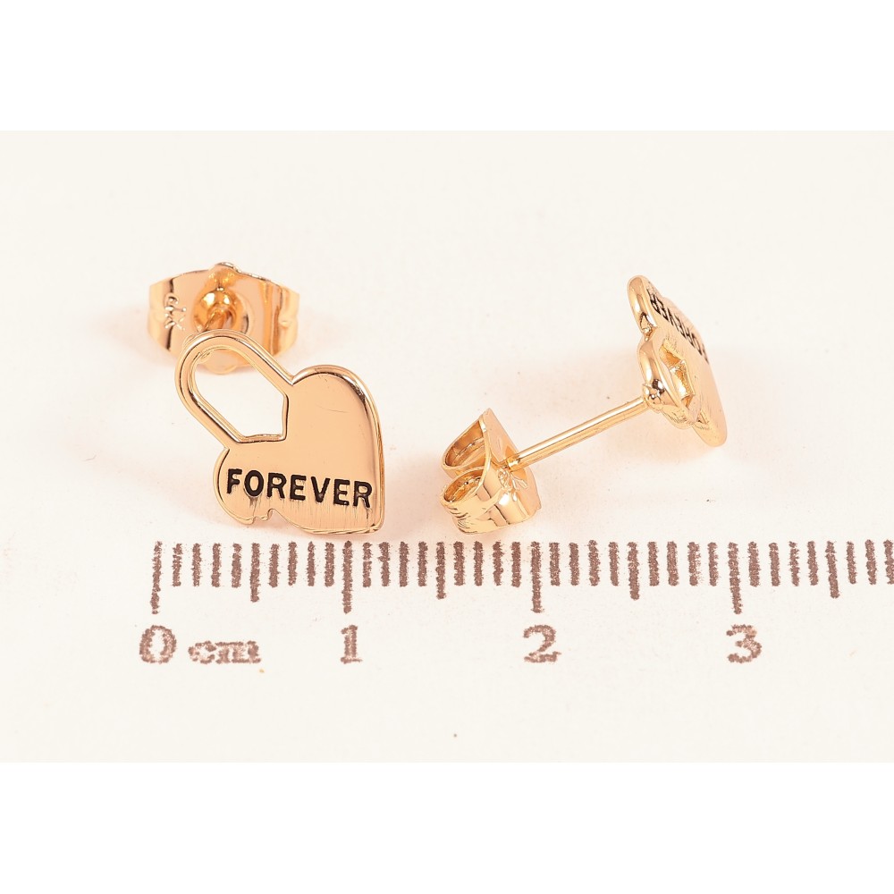 Серьги Xuping цвет Позолота 18К пусеты "Сердечки-замочки с надписью Forever"