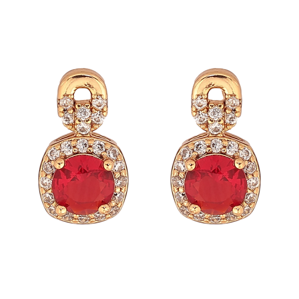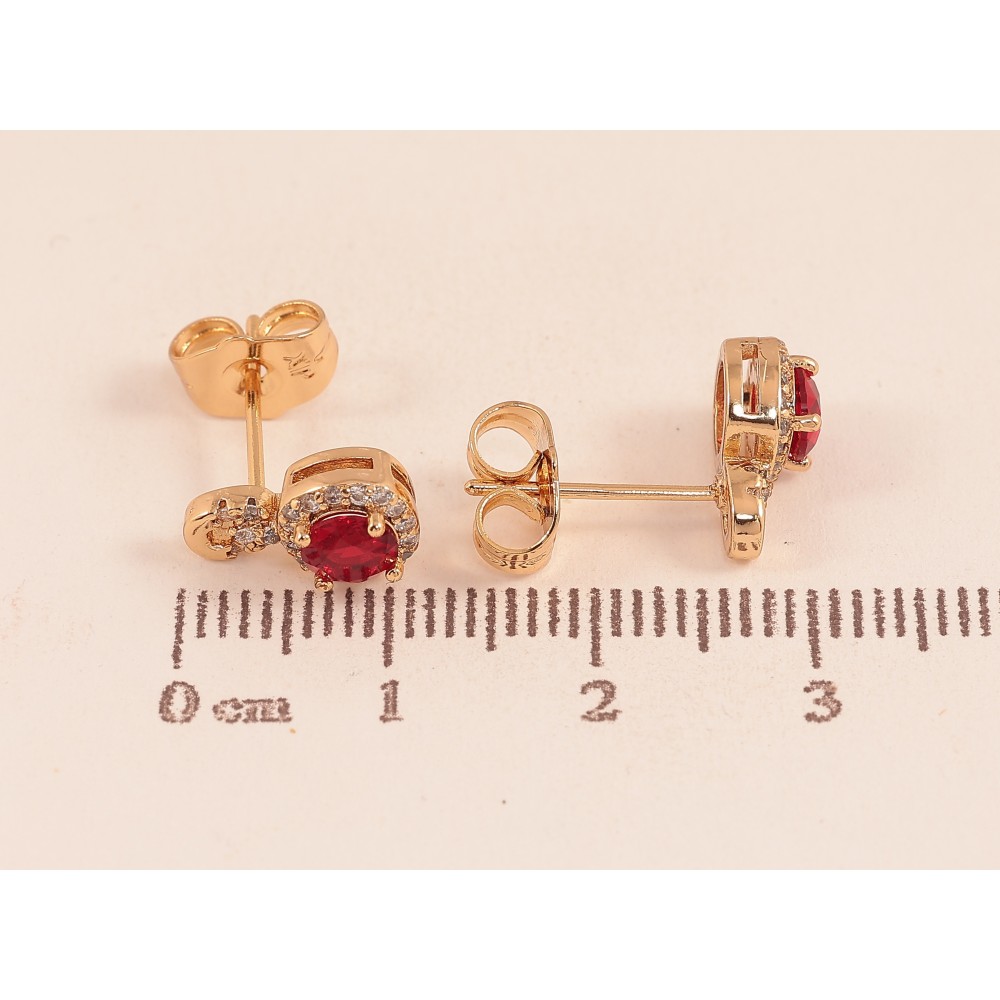 Серьги Xuping цвет Позолота 18К пусеты "Узор с красными кристаллами"