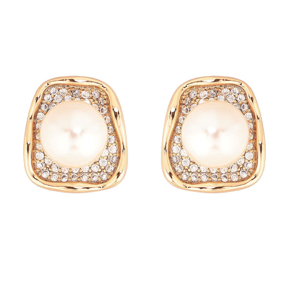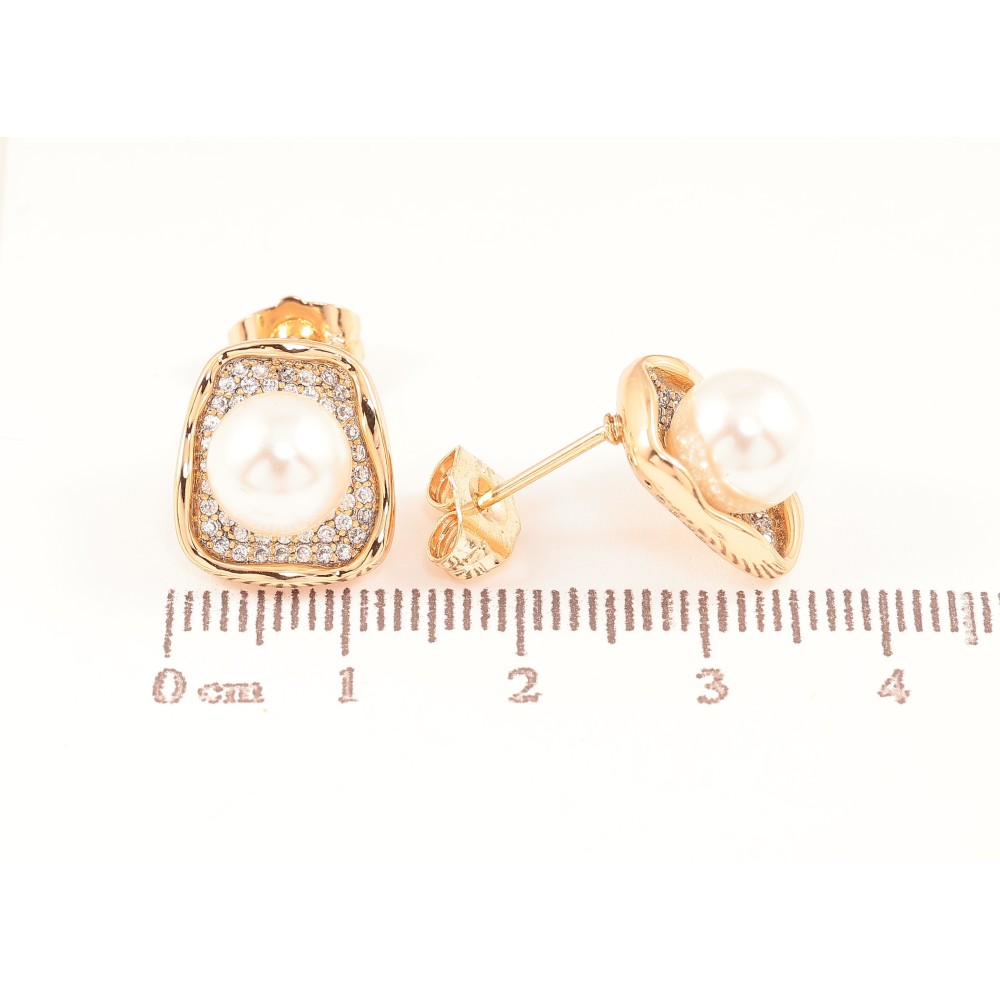 Серьги Xuping цвет Позолота 18К пусеты "Узор с инкрустацией кристаллами и жемчужинами"
