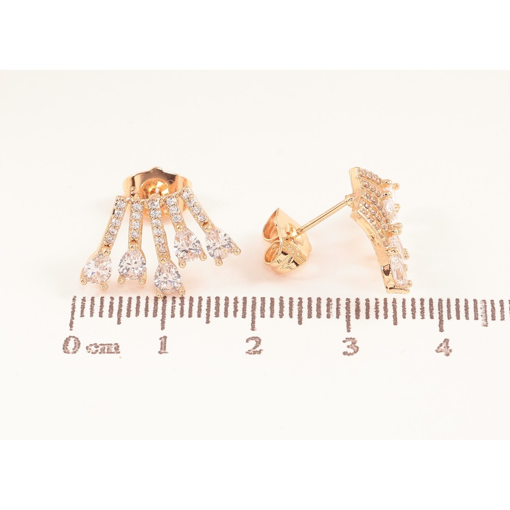 Серьги Xuping цвет Позолота 18К пусеты "Узор с кристаллами" фото №2