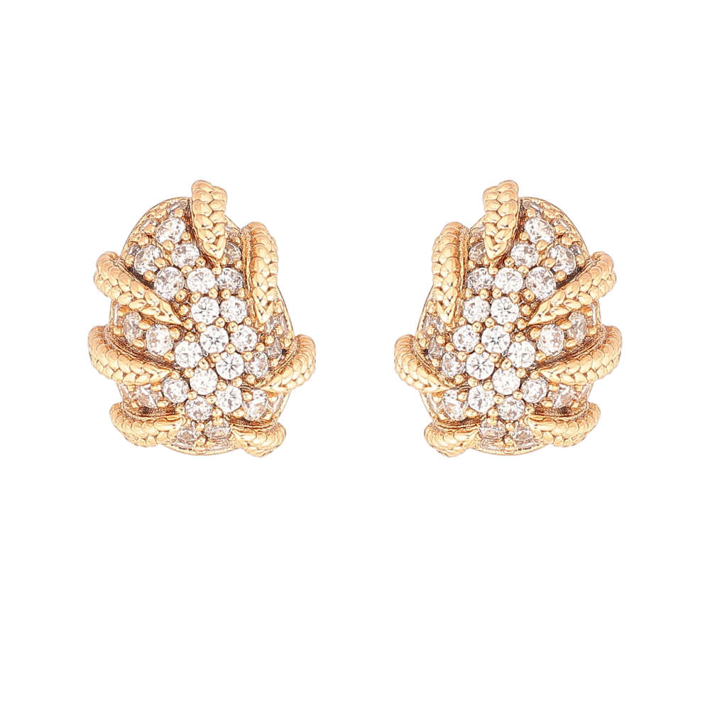 Серьги Xuping цвет Позолота 18К пусеты "Узор с кристаллами" фото №1