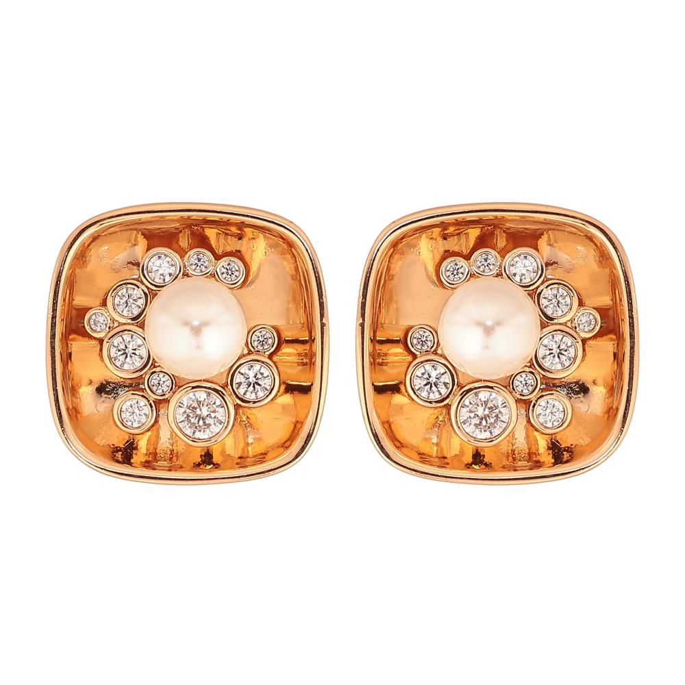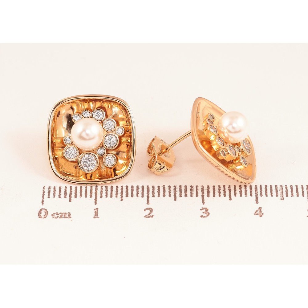 Серьги Xuping цвет Позолота 18К пусеты "Узор с кристаллами и жемчужинами"