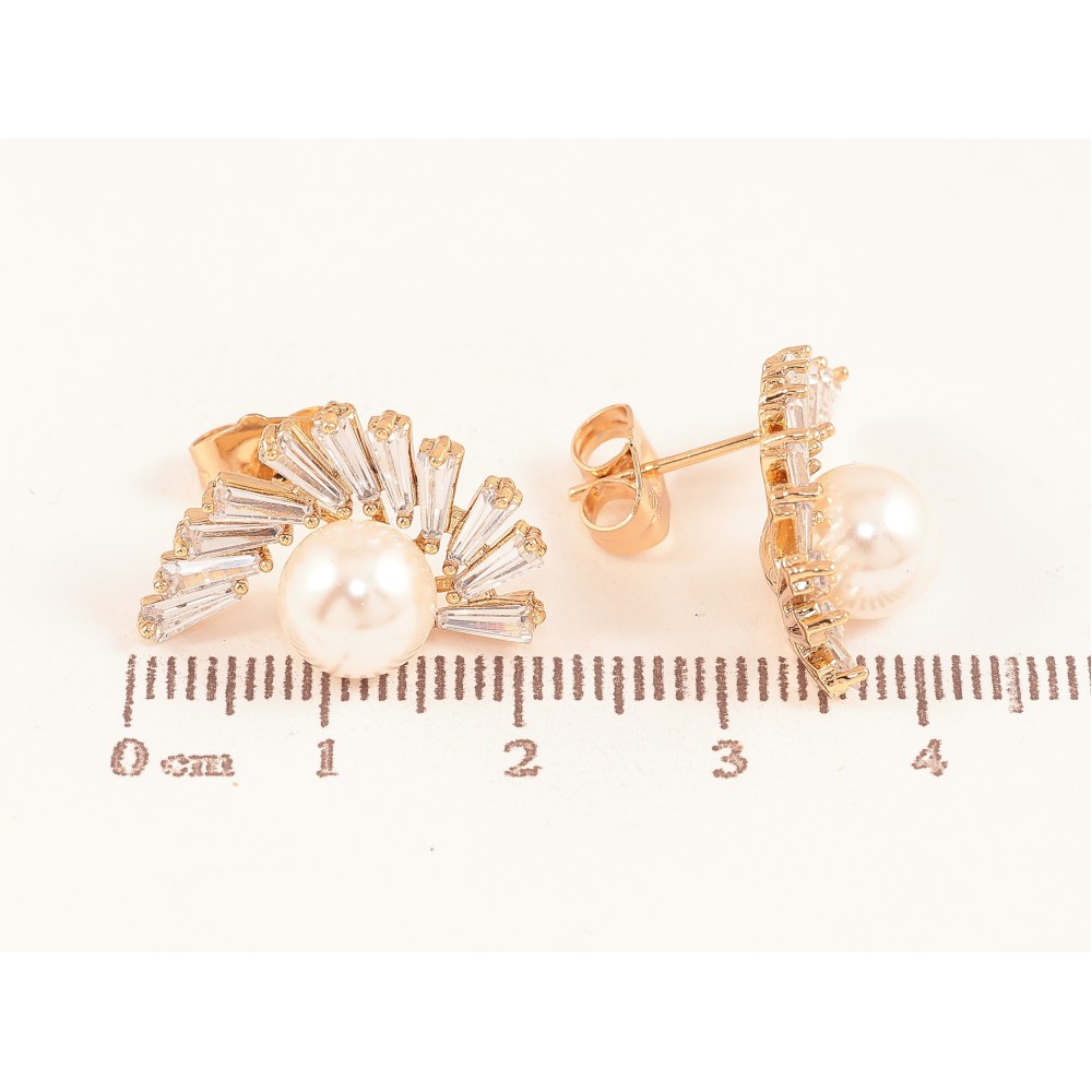 Серьги Xuping цвет Позолота 18К пусеты "Узор с кристаллами и жемчужинами"
