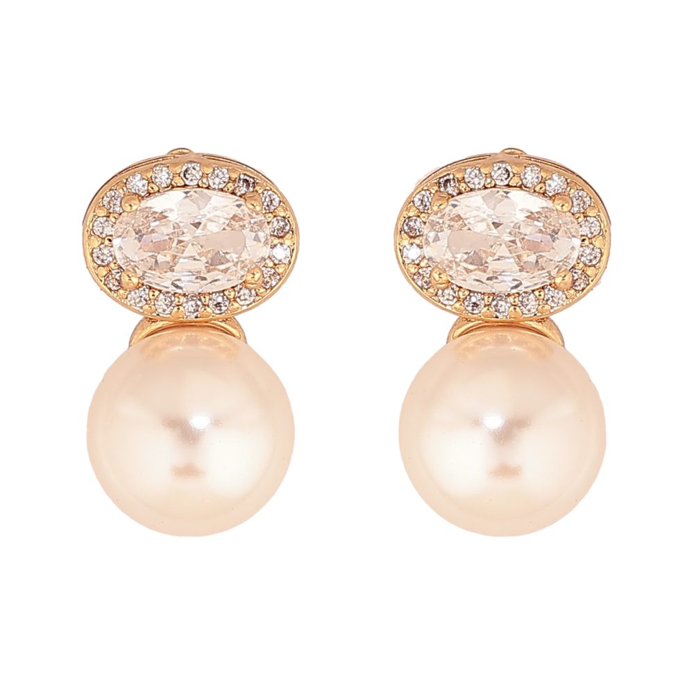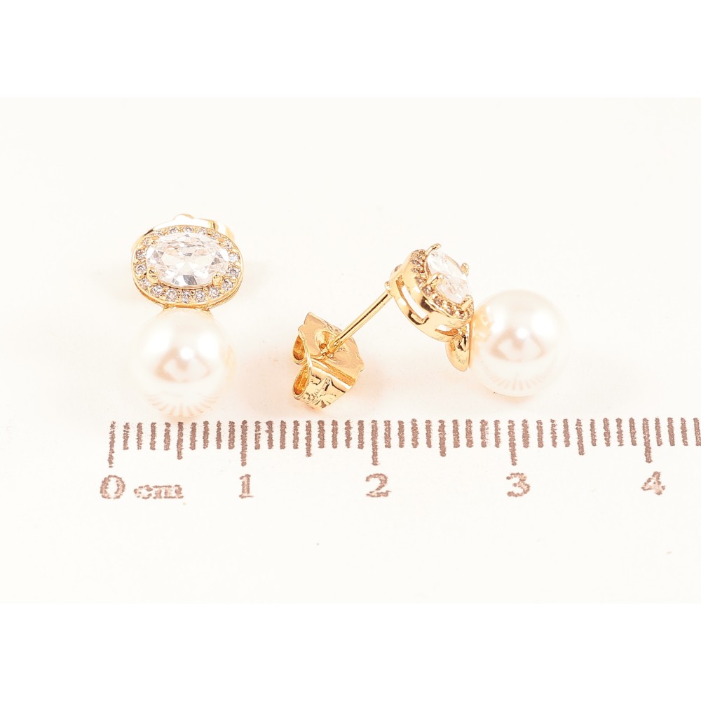 Серьги Xuping цвет Позолота 18К пусеты "Узор с кристаллами та жемчужинами"