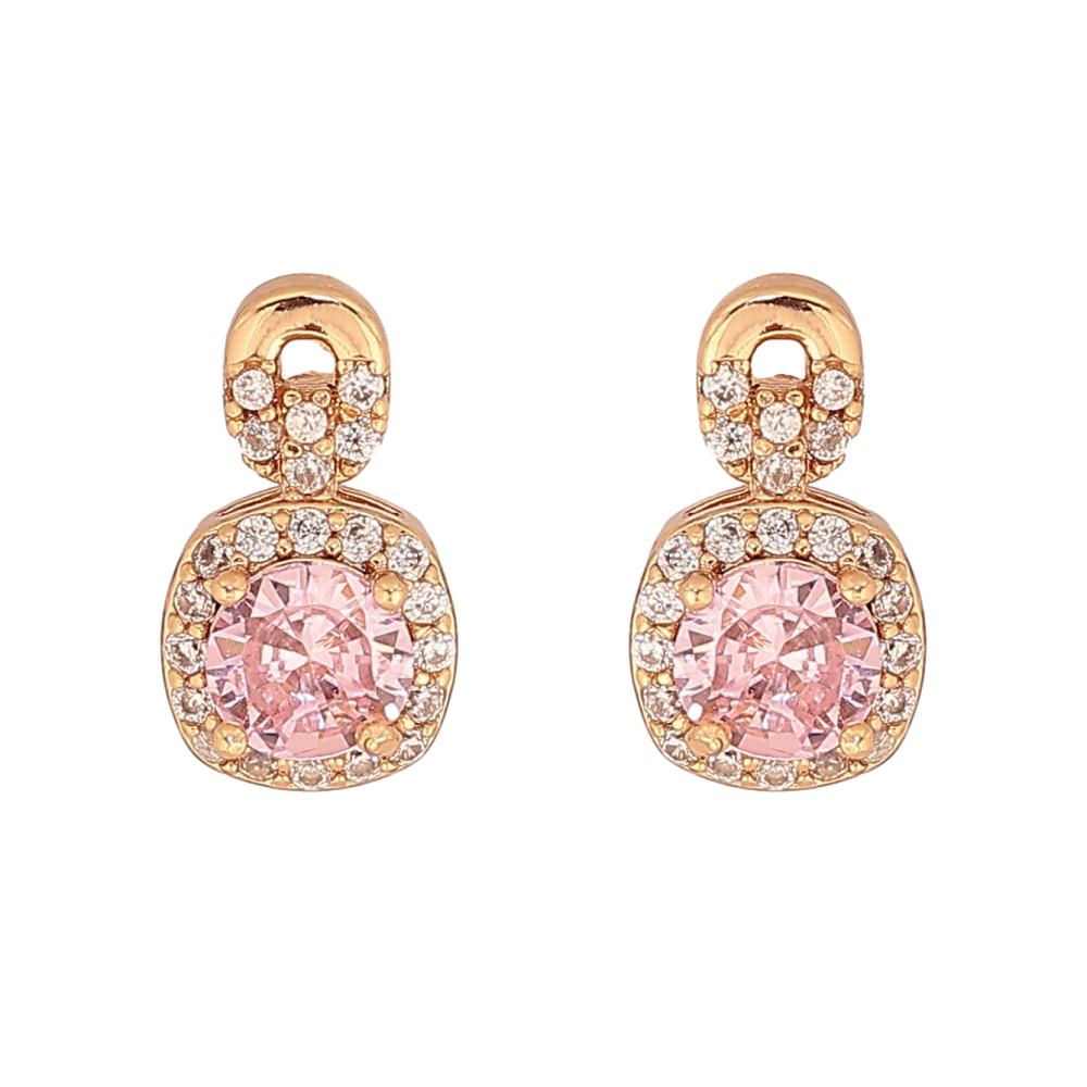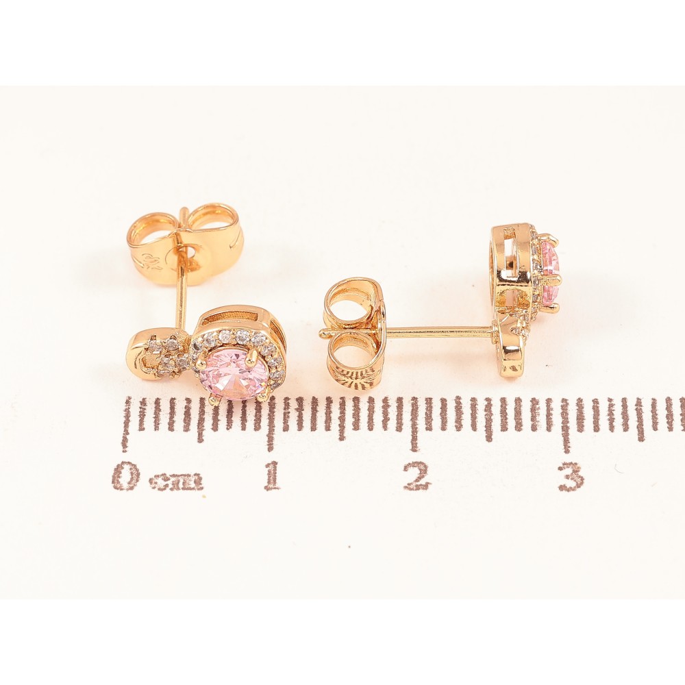 Серьги Xuping цвет Позолота 18К пусеты "Узор с розовыми кристаллами"