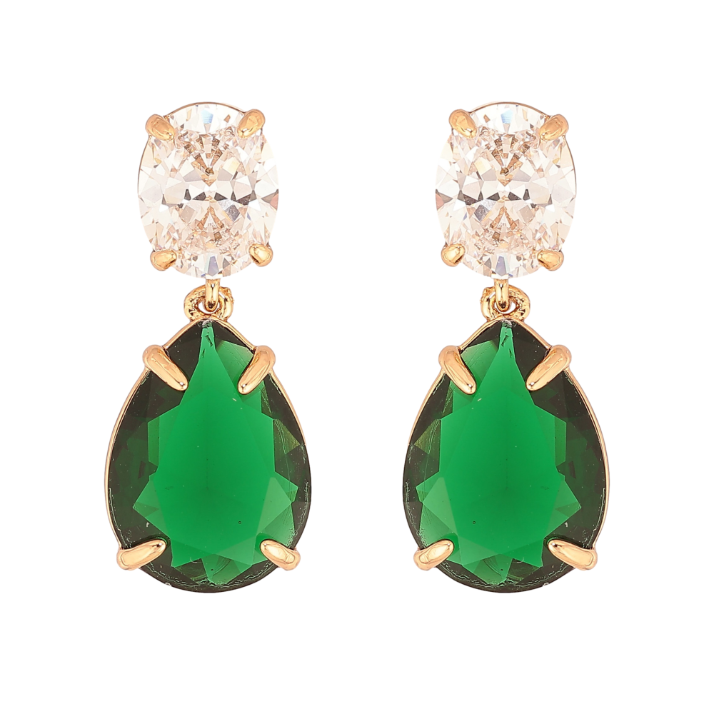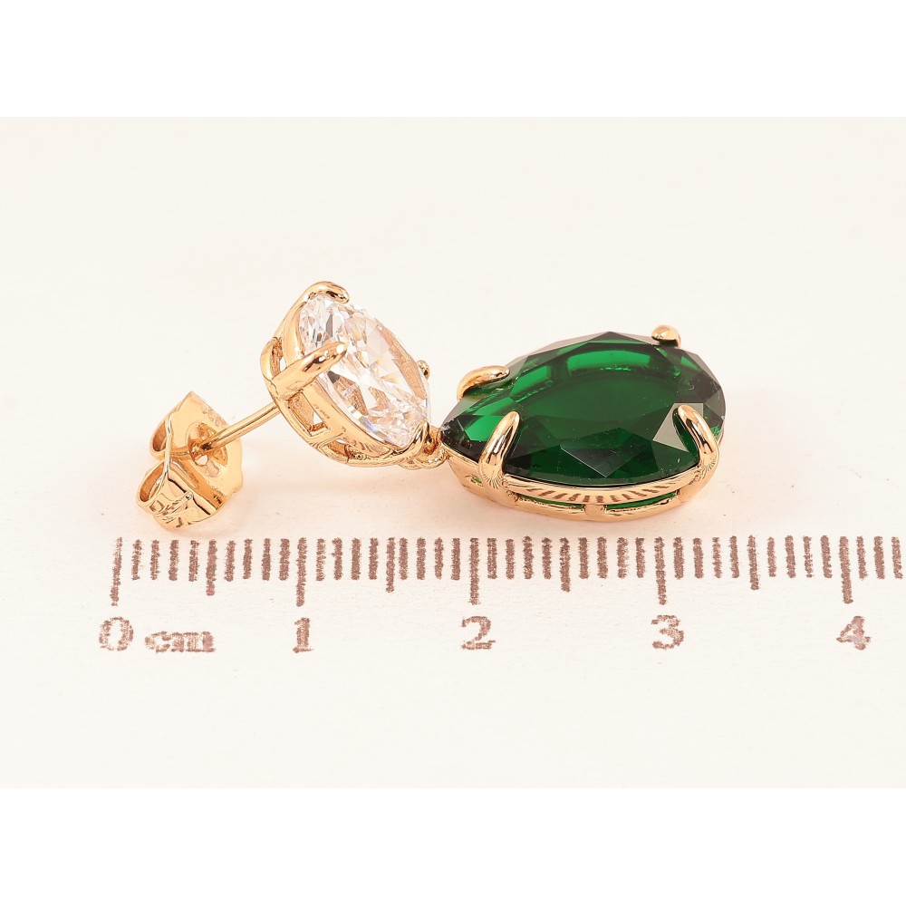 Серьги Xuping цвет Позолота 18К пусеты "Зелено-белые кристаллы" фото №2