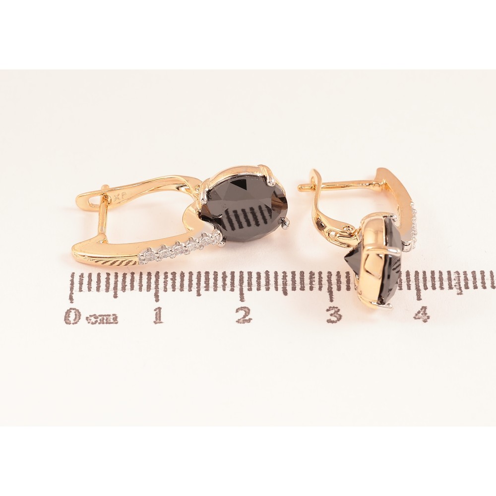 Серьги Xuping цвет Позолота 18K + Родий английский замок "Черные кристаллы на дужках"