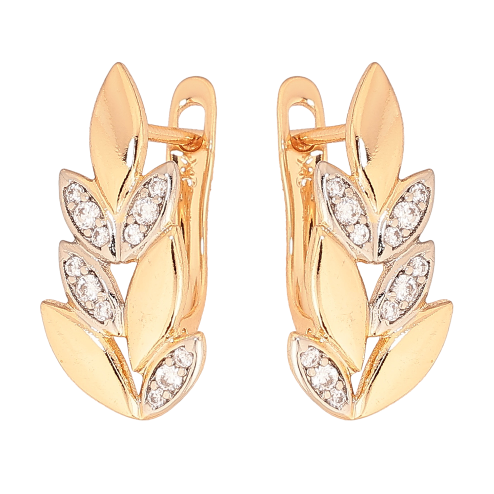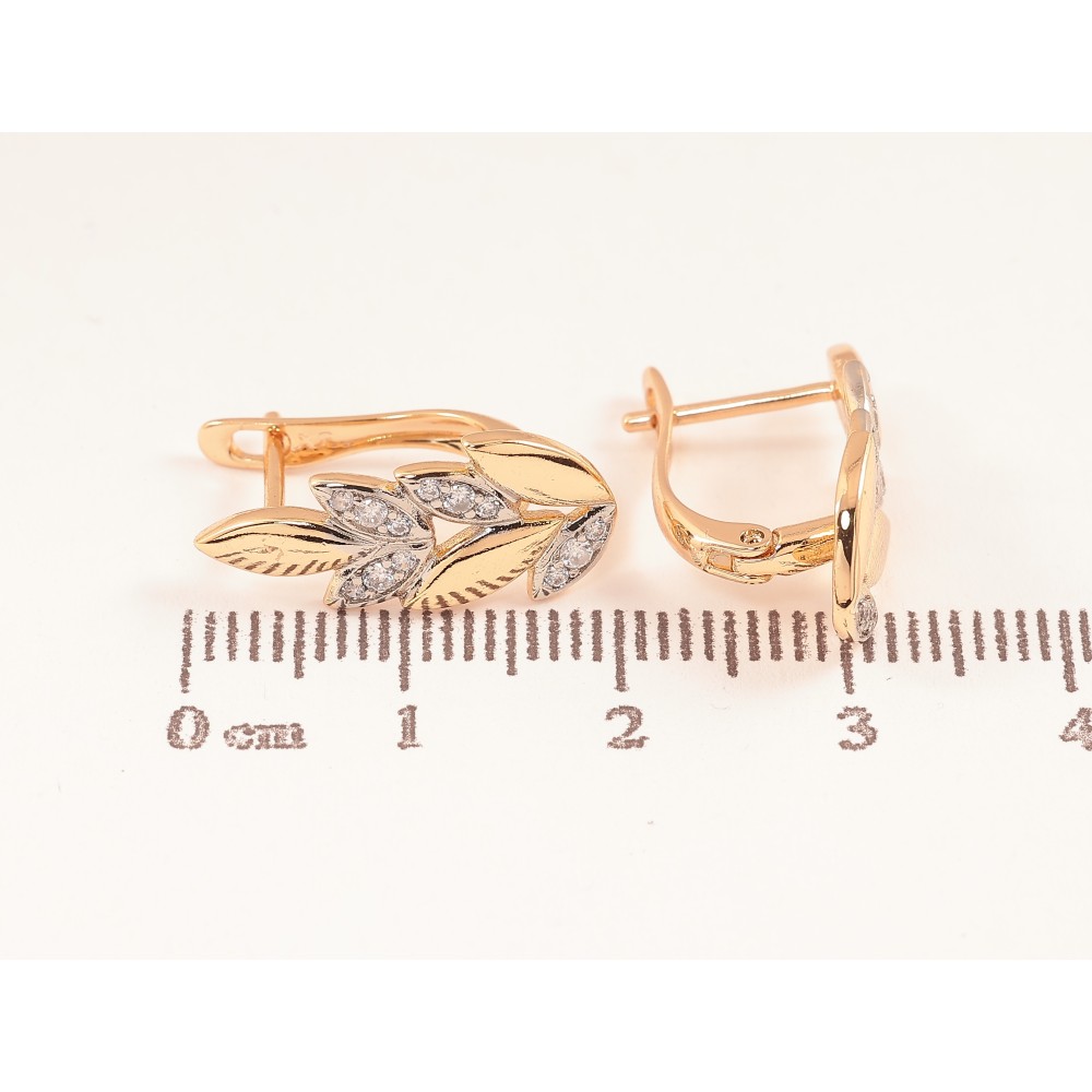 Серьги Xuping цвет позолота 18K + родий английский замок веточки с кристаллами
