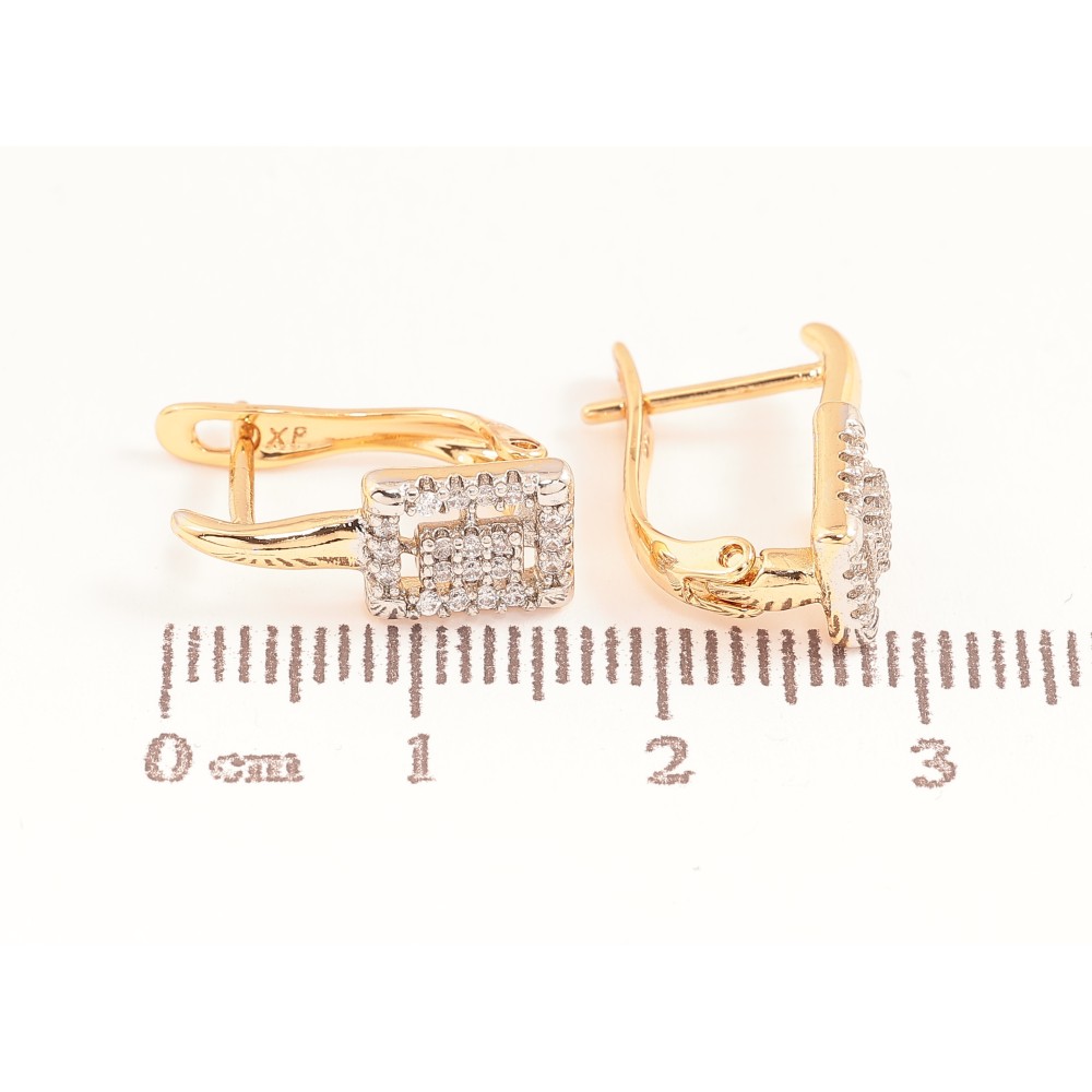 Серьги Xuping цвет позолота 18K + родий английский замок узор с кристаллами
