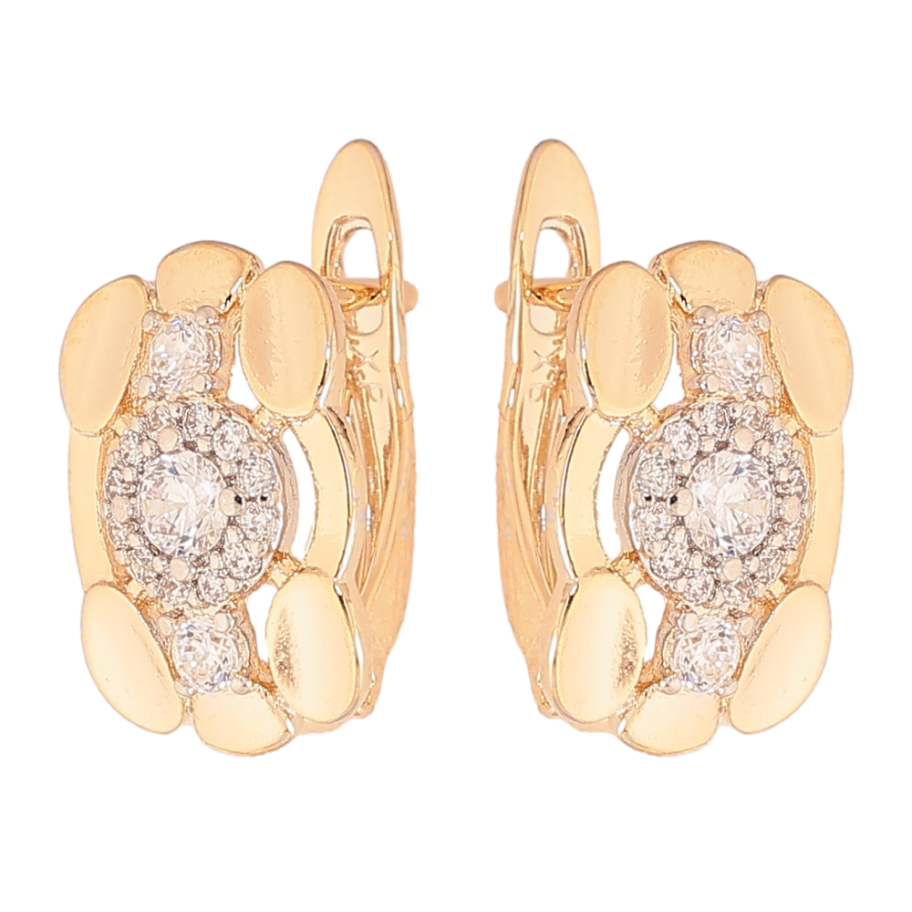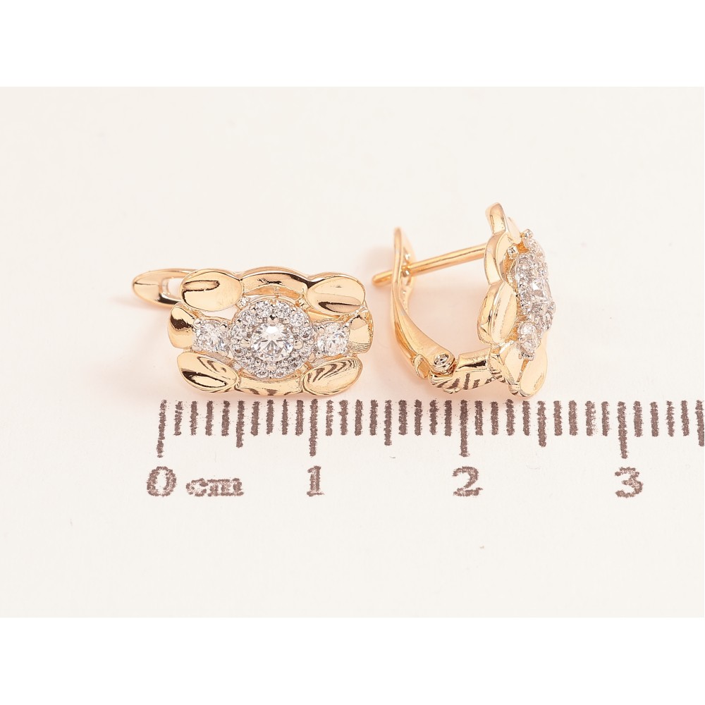 Серьги Xuping цвет позолота 18K + родий английский замок узор с кристаллами