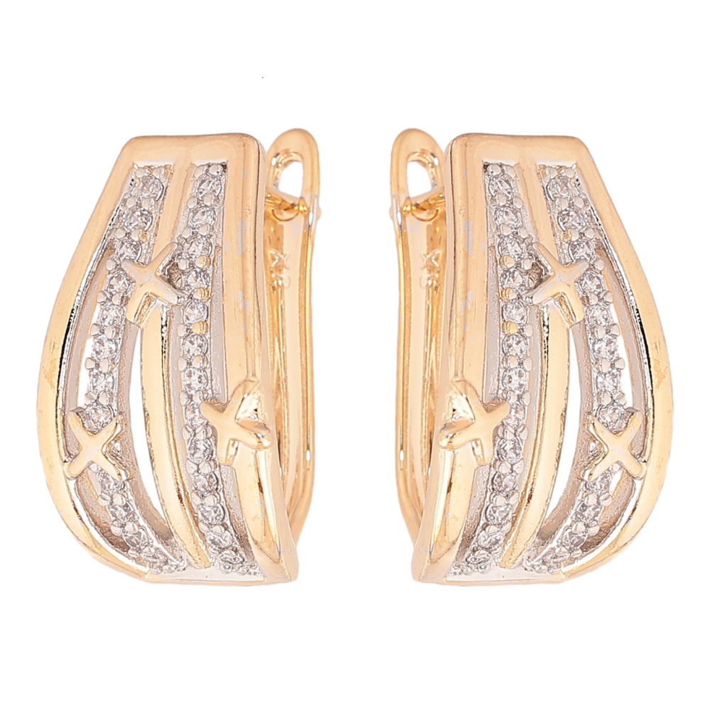 Серьги Xuping цвет позолота 18K + родий английский замок узор с кристаллами