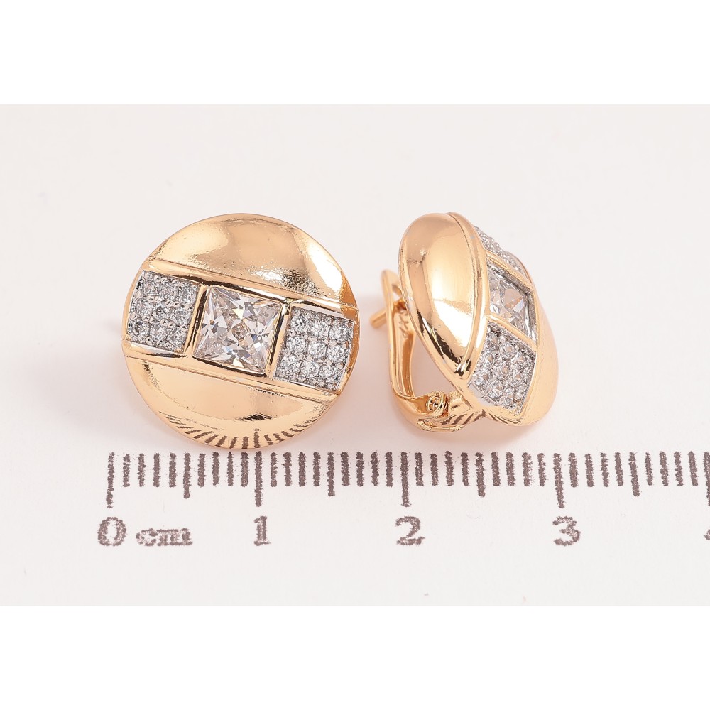 Серьги Xuping цвет позолота 18K + родий английский замок узор с кристаллами фото №1