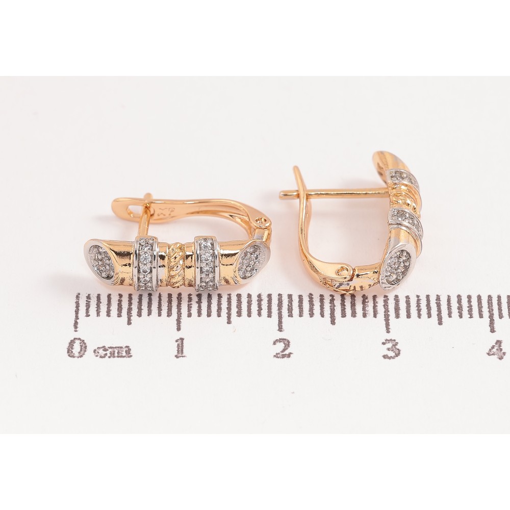 Серьги Xuping цвет позолота 18K + родий английский замок узор с кристаллами фото №1