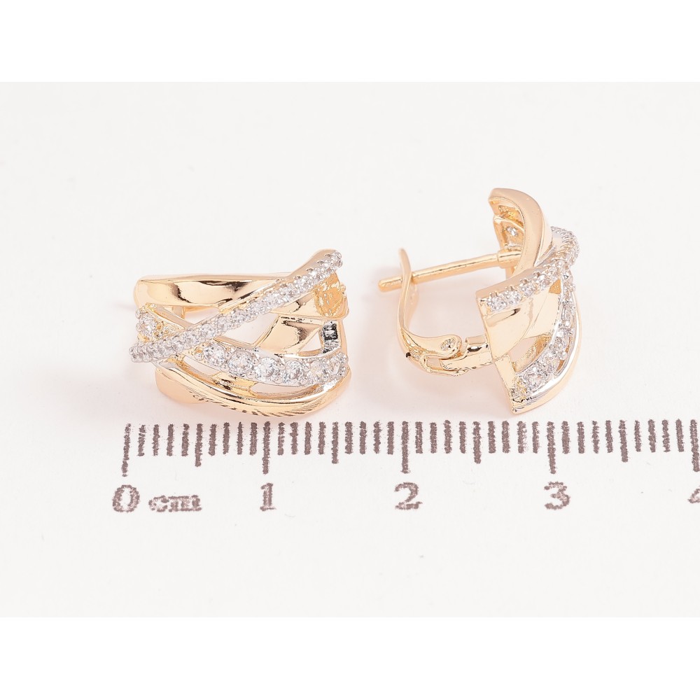 Серьги Xuping цвет позолота 18K + родий английский замок узор с кристаллами фото №1