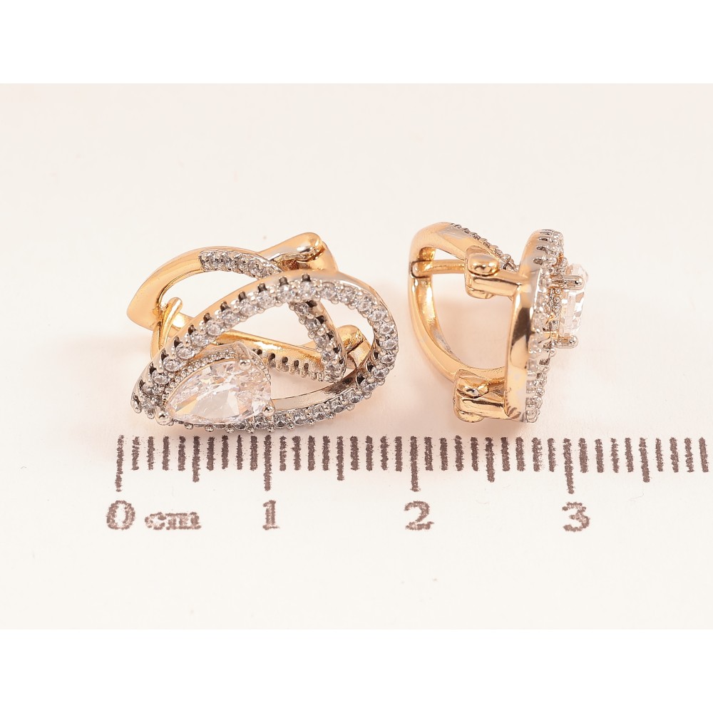 Серьги Xuping цвет позолота 18K + родий английский замок узор с кристаллами