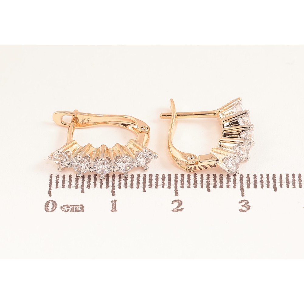 Серьги Xuping цвет Позолота 18K + Родий английский замок "Узор с кристаллами"