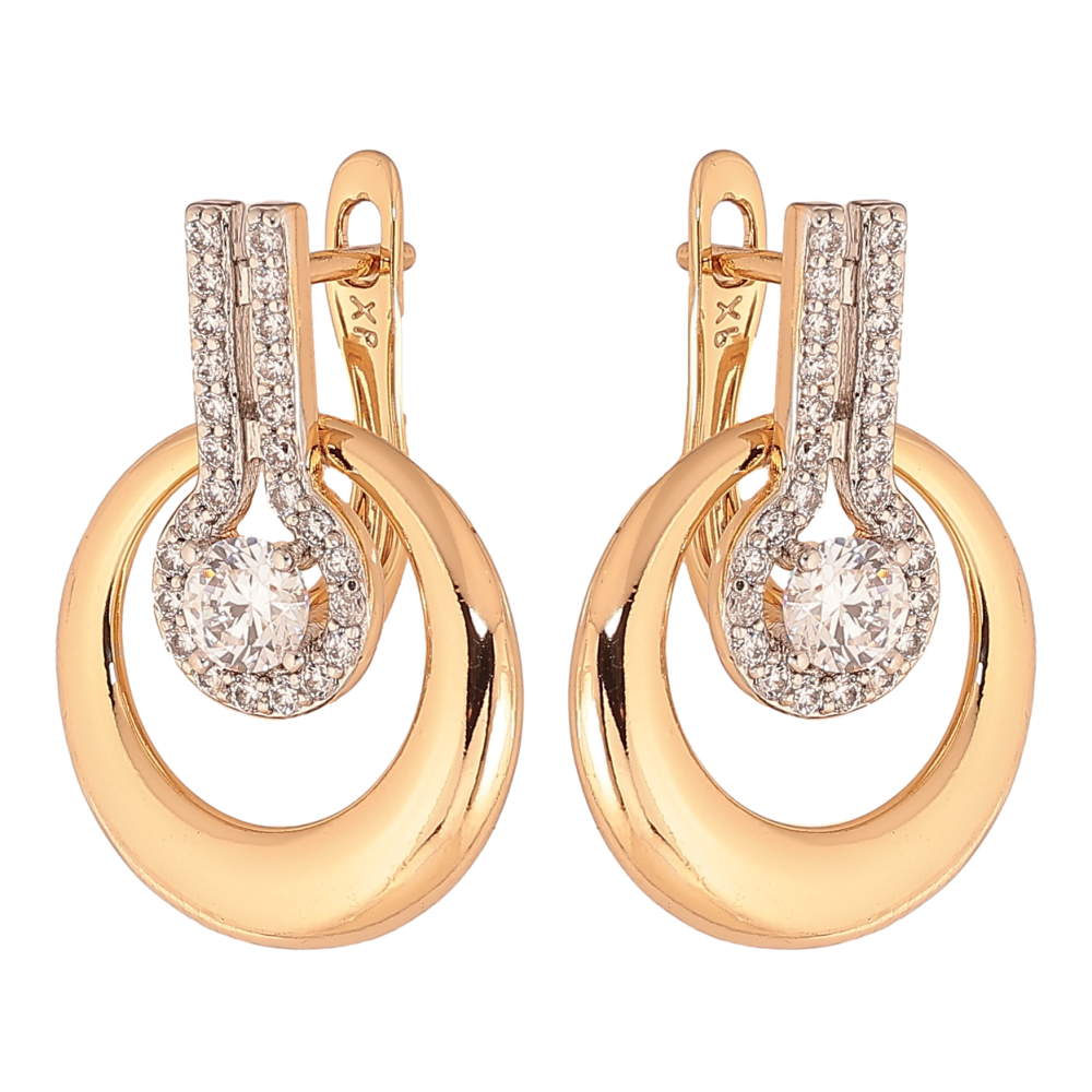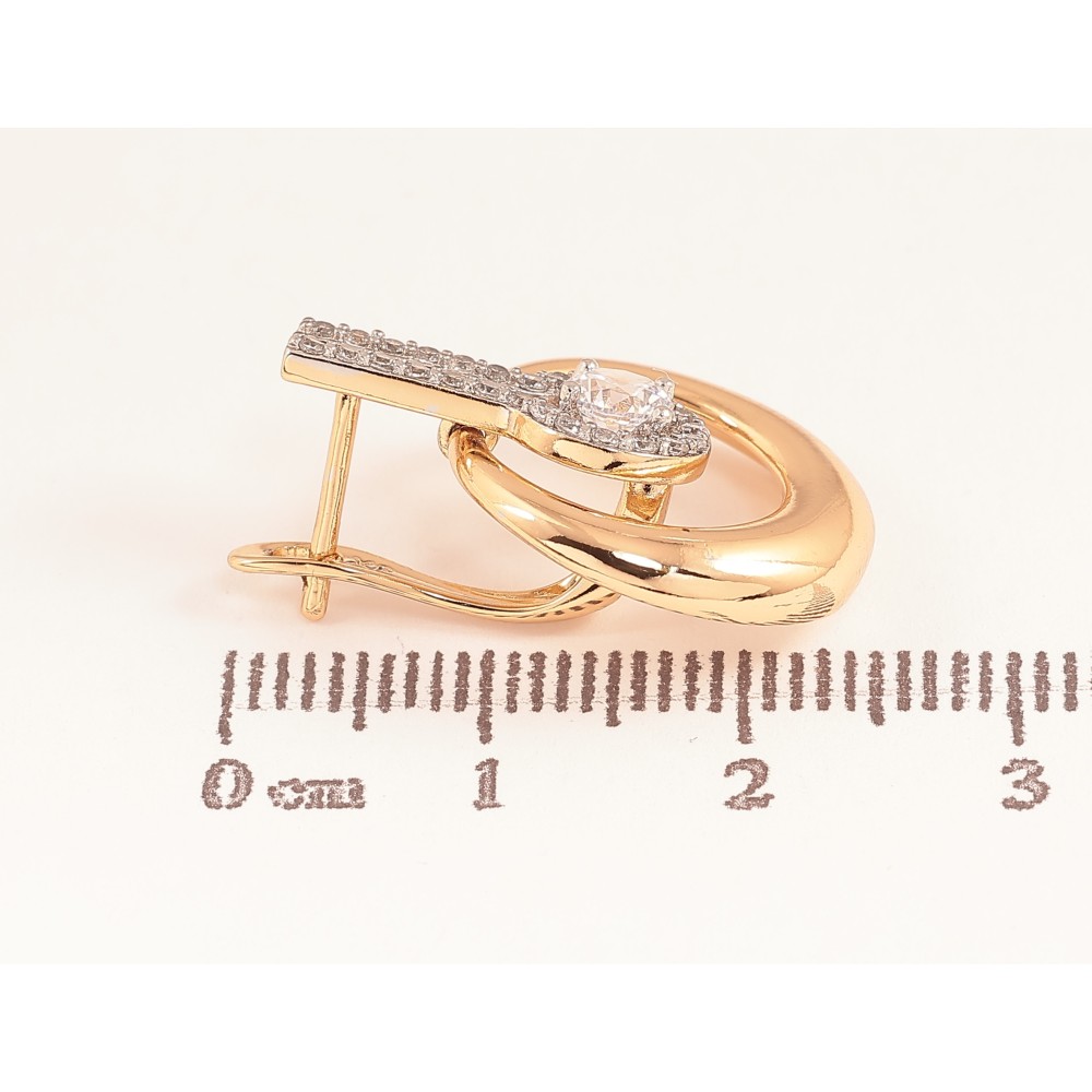 Серьги Xuping цвет Позолота 18K + Родий английский замок "Узор с кристаллами" фото №1