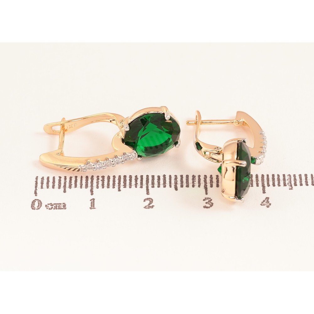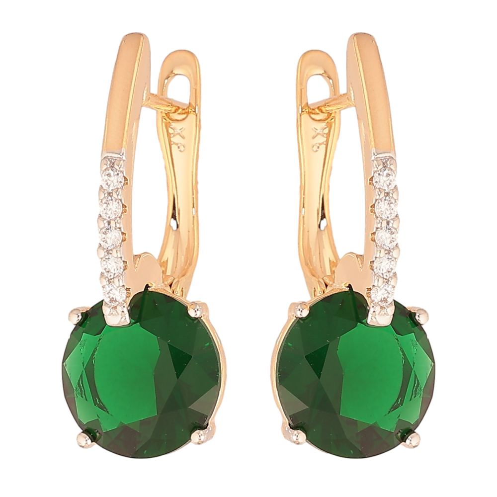Серьги Xuping цвет Позолота 18K + Родий английский замок "Зеленые кристаллы на дужках"