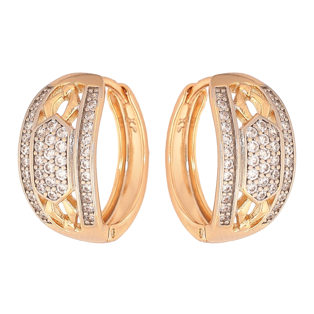 Серьги Xuping цвет Позолота 18K + Родий колечки "Декоративный узор с кристаллами"