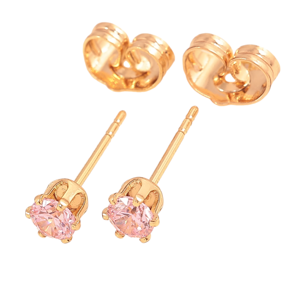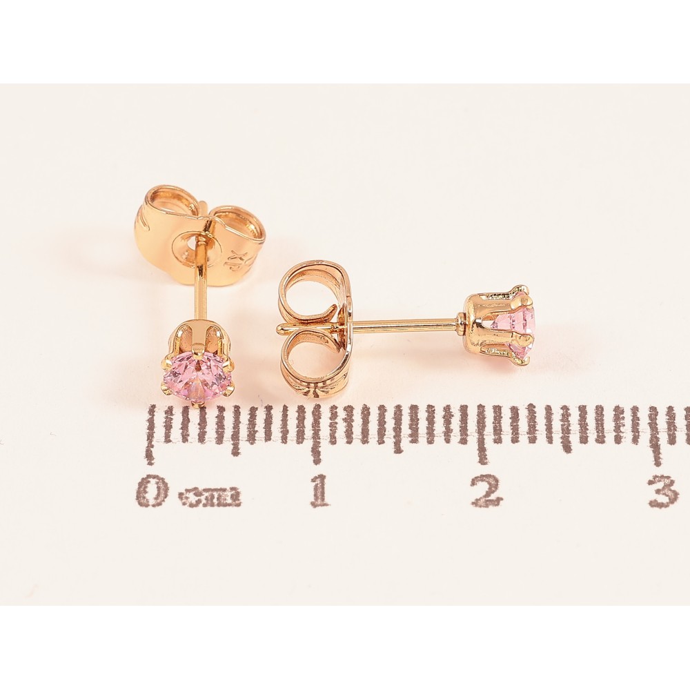 Серьги Xuping цвет Позолота 18К пусеты "Розовые кристаллы в 6-ти крапановой оправе" ø 4мм