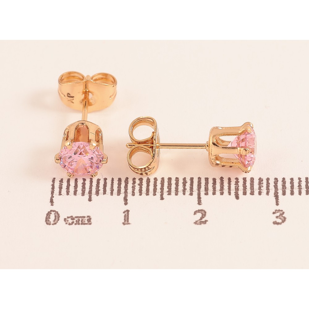 Серьги Xuping цвет Позолота 18К пусеты "Розовые кристаллы в 6-ти крапановой оправе" ø 6мм
