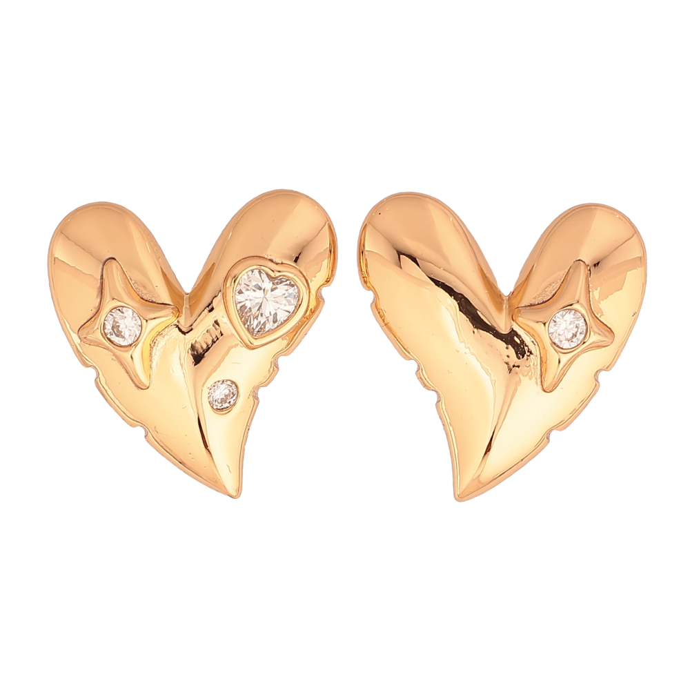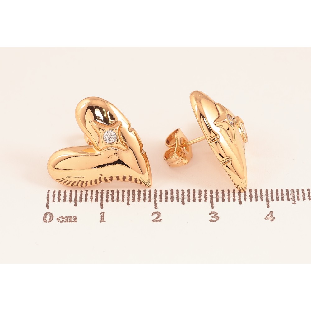 Серьги Xuping цвет Позолота 18К пусеты "Сердечки с ассиметричным узором кристаллами"