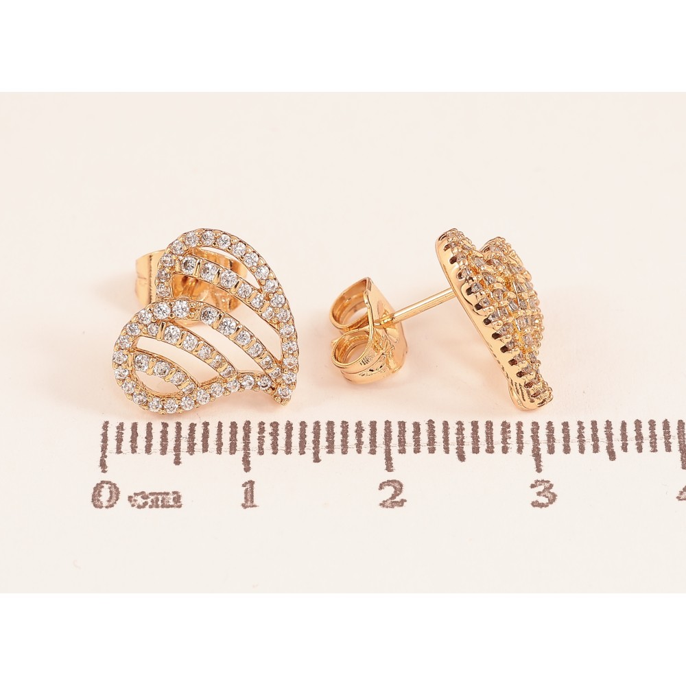 Серьги Xuping цвет Позолота 18К пусеты "Сердечки с инкрустацией кристаллами"