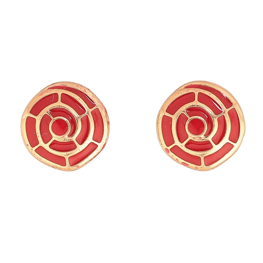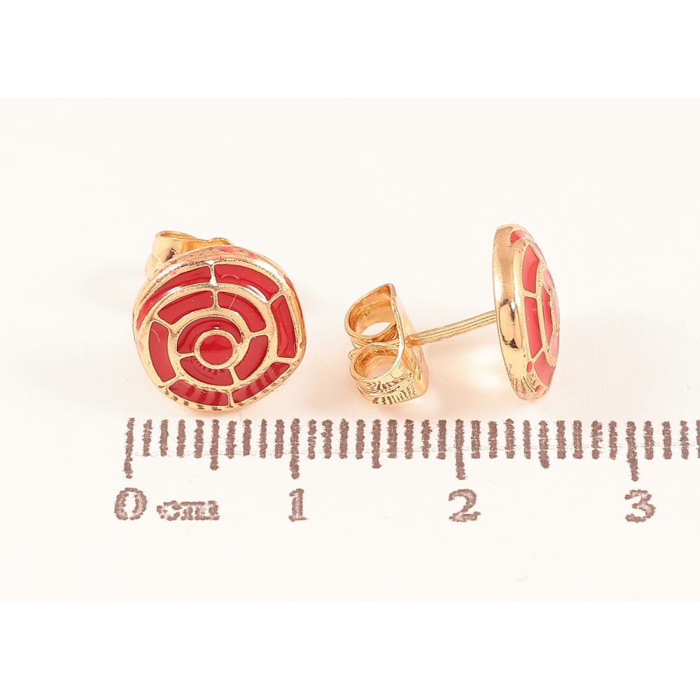 Серьги Xuping цвет Позолота 18К пусеты "Узор с красной эмалью"