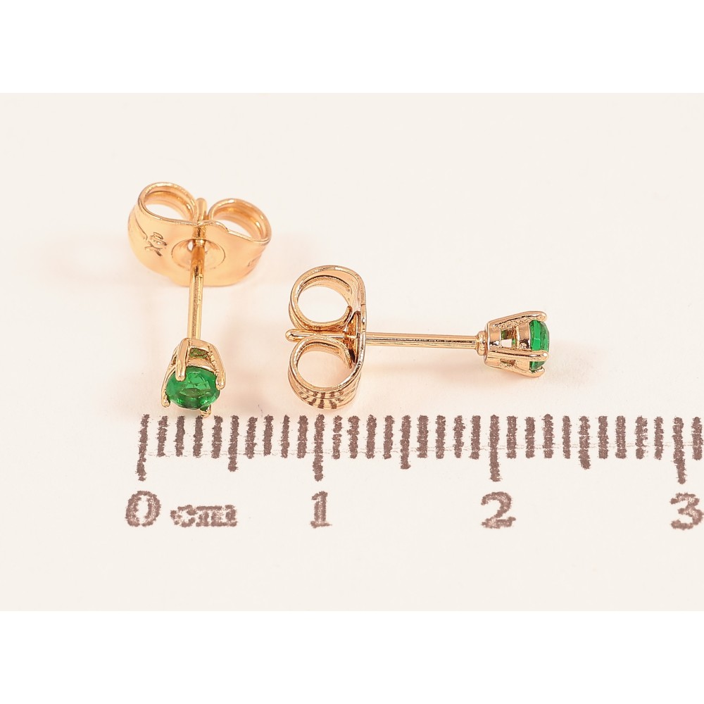 Серьги Xuping цвет Позолота 18К пусеты "Зеленые кристаллы в 4-х крапановой оправе" ø 3мм