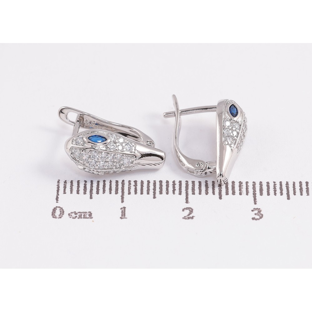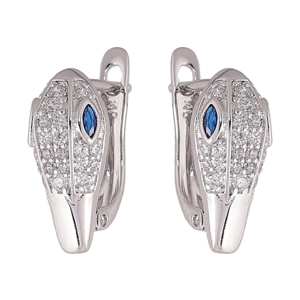 Серьги Xuping цвет Родий английский замок "Инкрустация с синими кристаллами"
